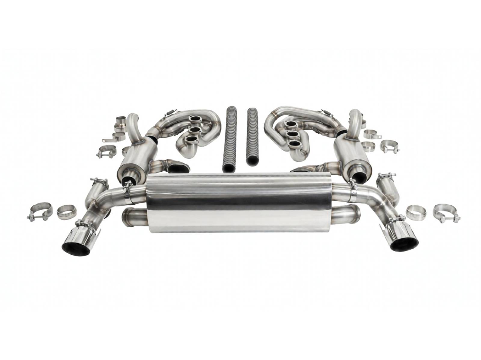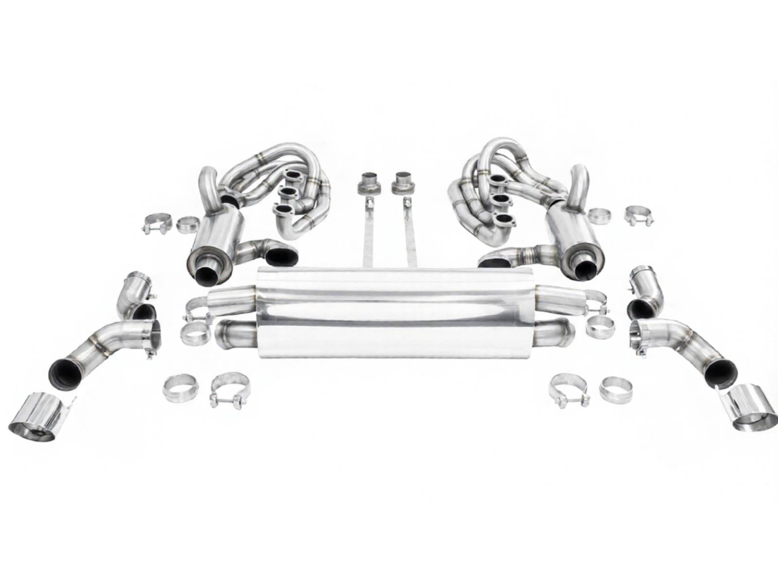 DesignTek Maximum power and aggressive sports car sound exactly like the factory 3.8L Supercup 964's. primarily intended for the track or race. This system has some resonance and is very sporty and aggressive. Please note this system bypass the cats and the heating system of the car.
