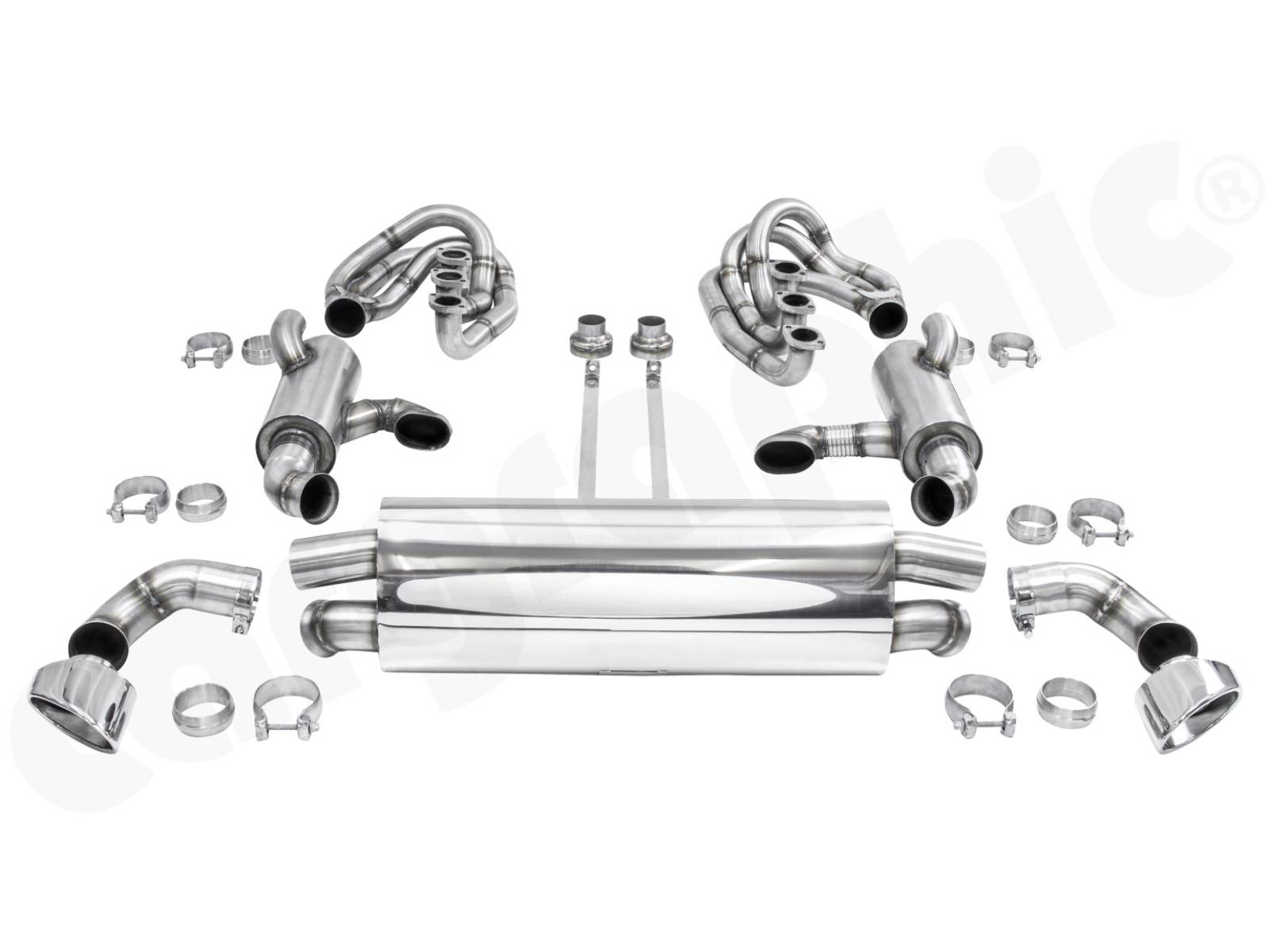 CARGRAPHIC GT 运动排气系统,带 ID45 GT 歧管,带/不带200cpsi 催化转化器,带加热功能和双流 AQ 后消音器,带 LH 和 RH 尾管出口。