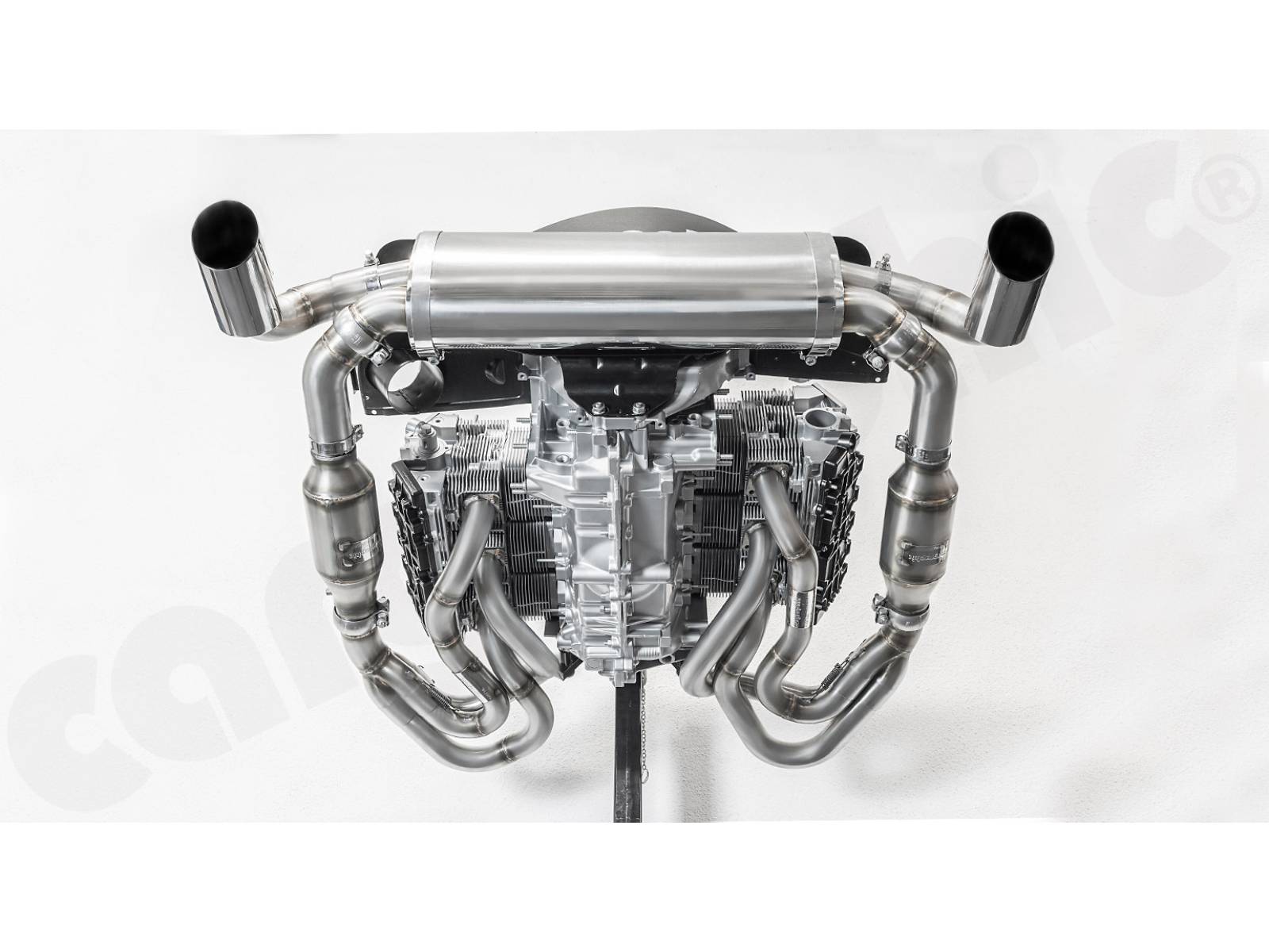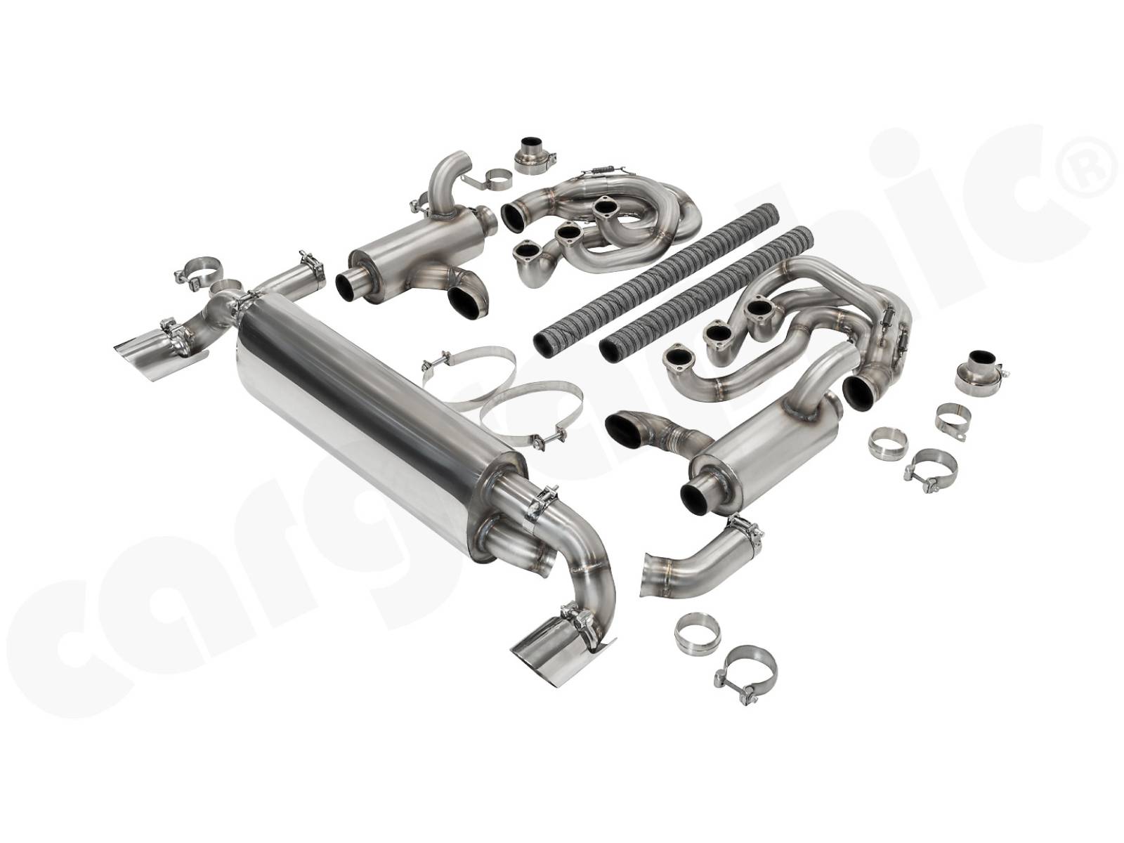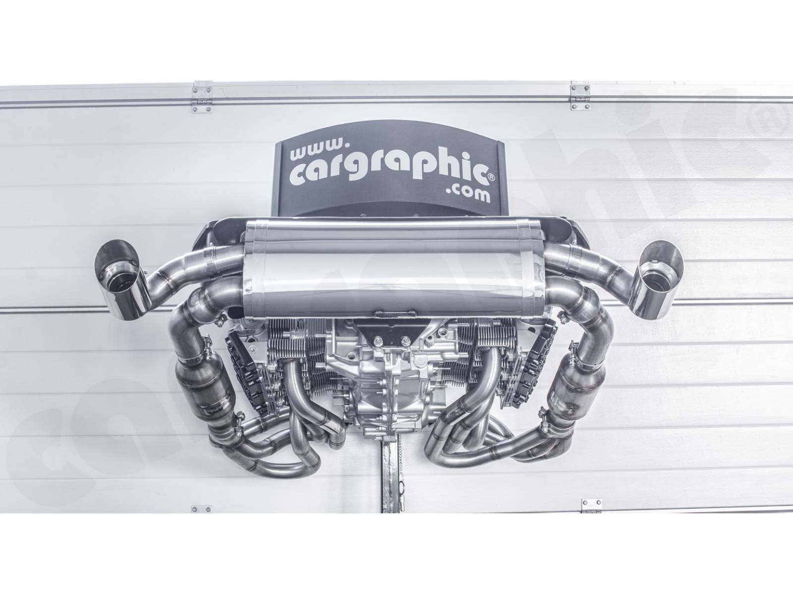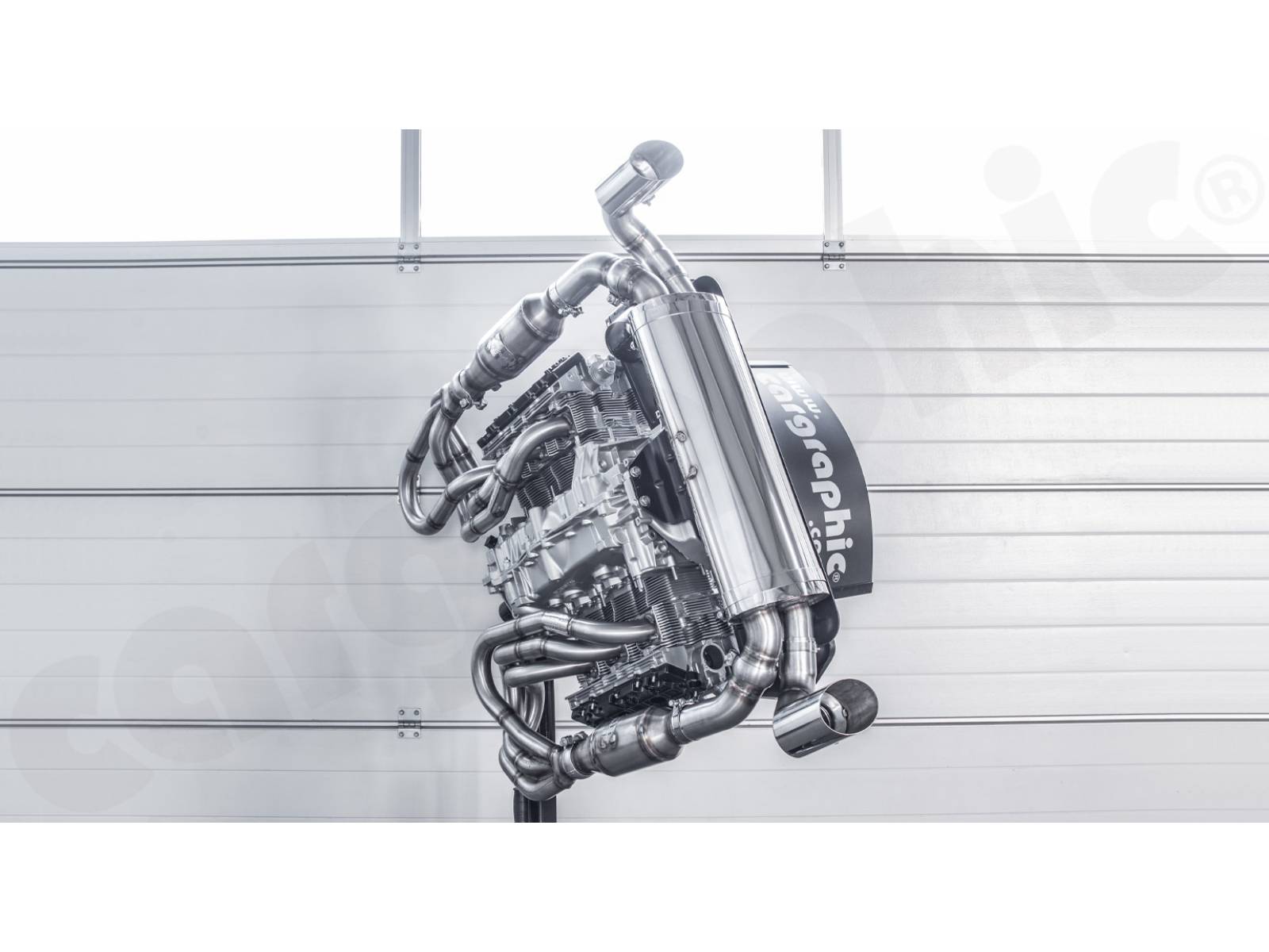 CARGRAPHIC GT 运动排气系统,带 ID42 GT 歧管,带/不带200cpsi 催化转化器,带加热功能和双流 AQ 后消音器,带 LH 和 RH 尾管出口。