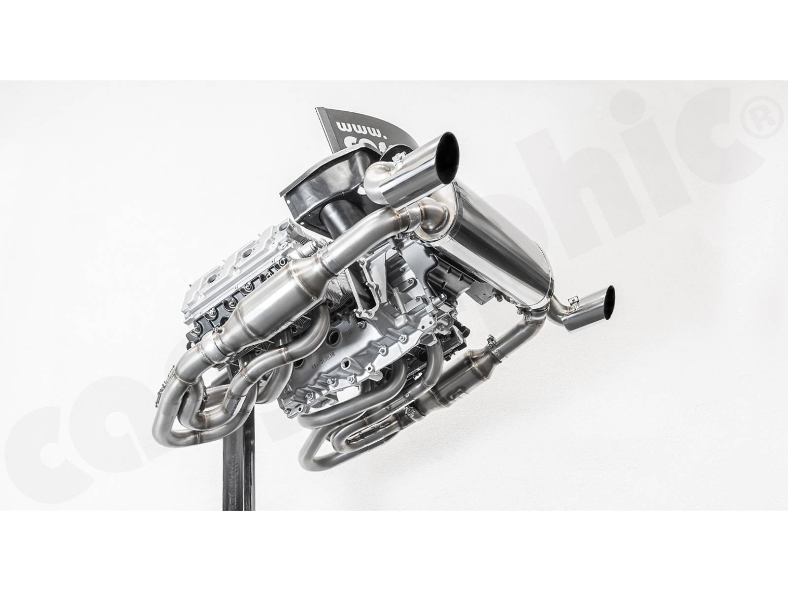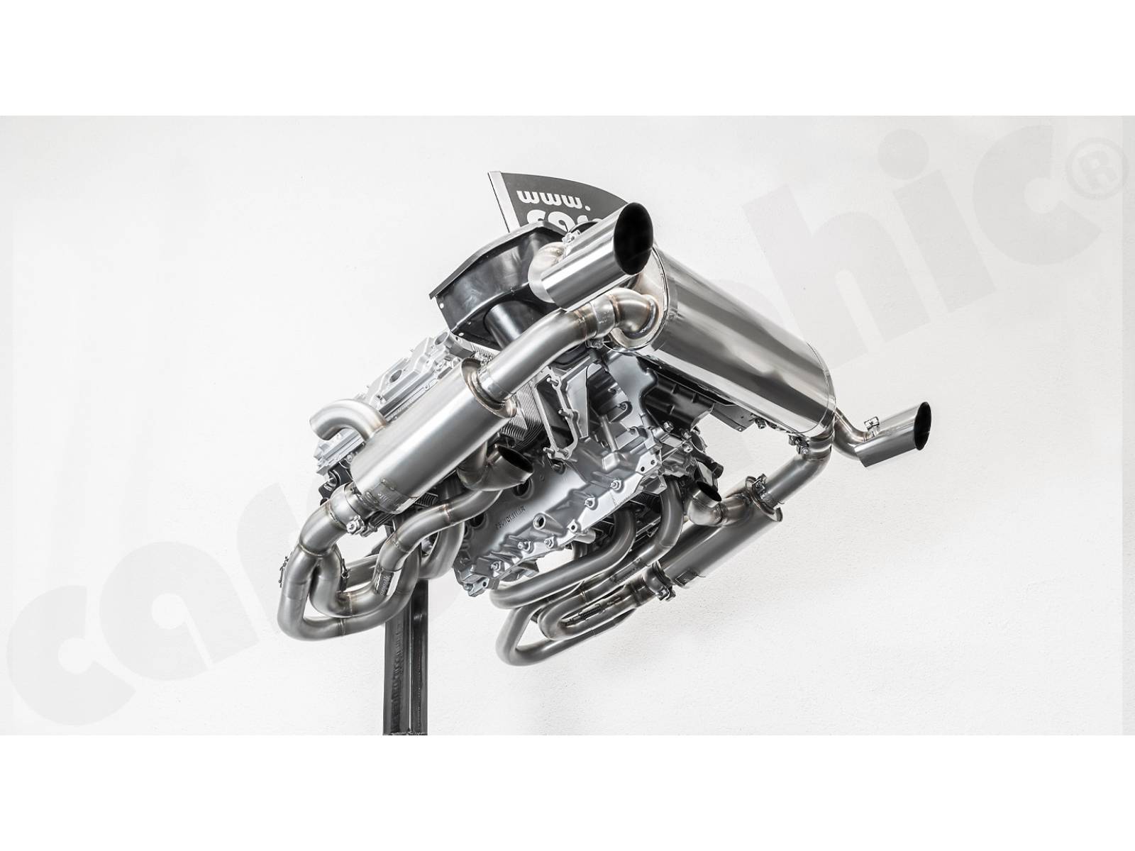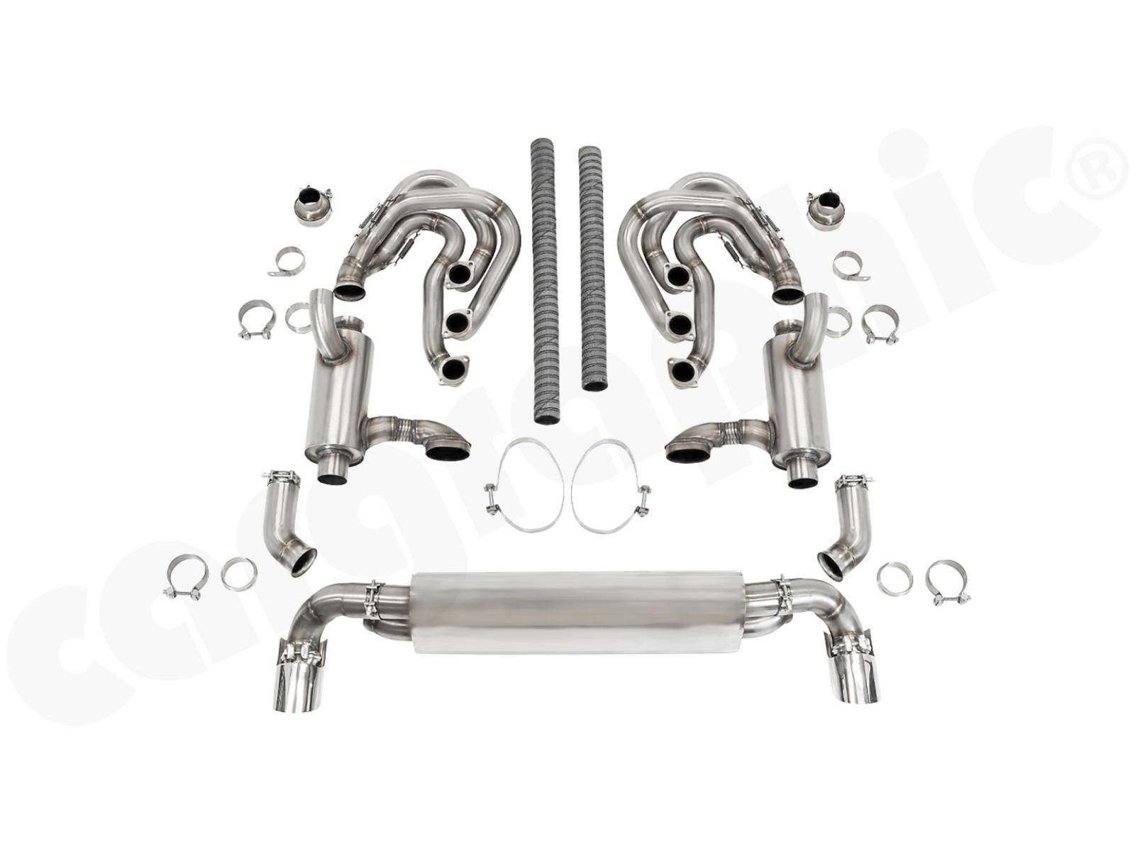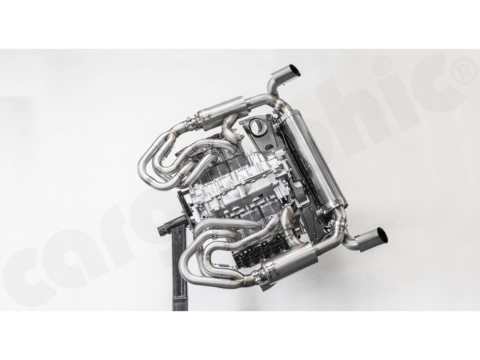 CARGRAPHIC GT 运动排气系统,带 ID42 GT 歧管,带/不带200cpsi 催化转化器,带加热功能和双流 AQ 后消音器,带 LH 和 RH 尾管出口。