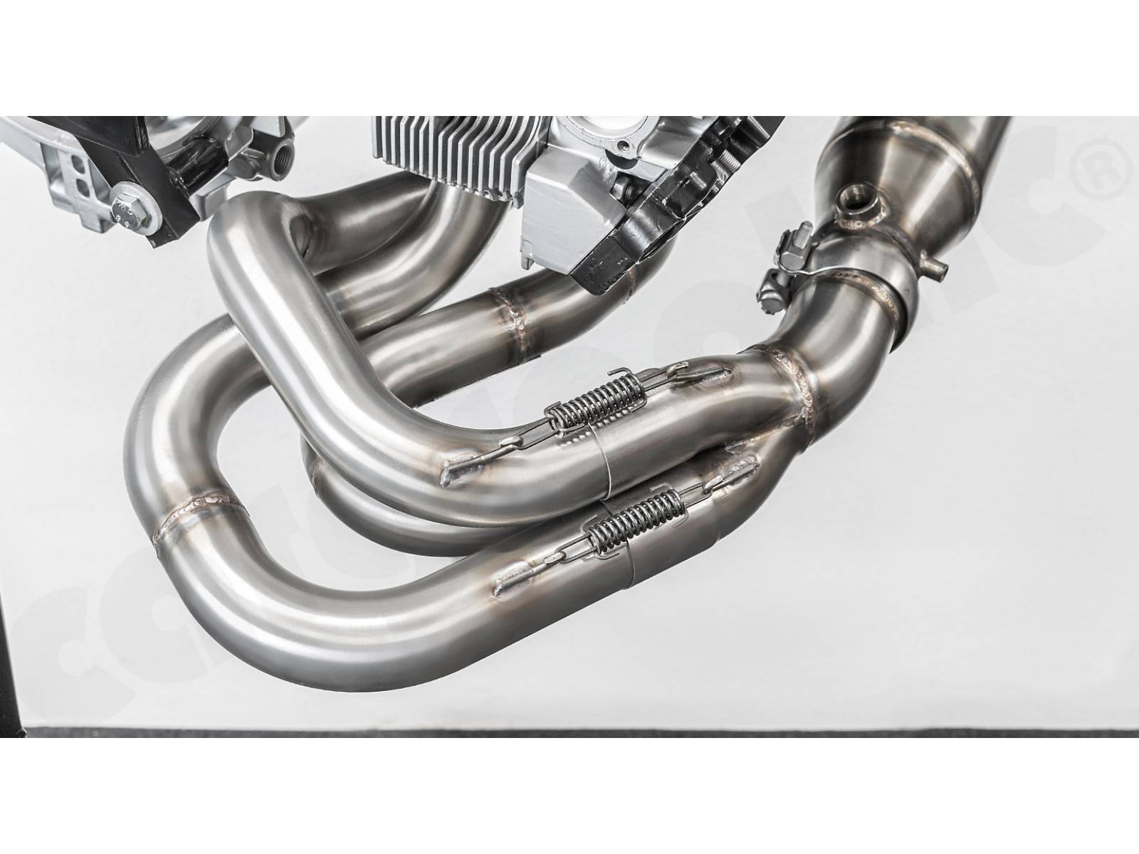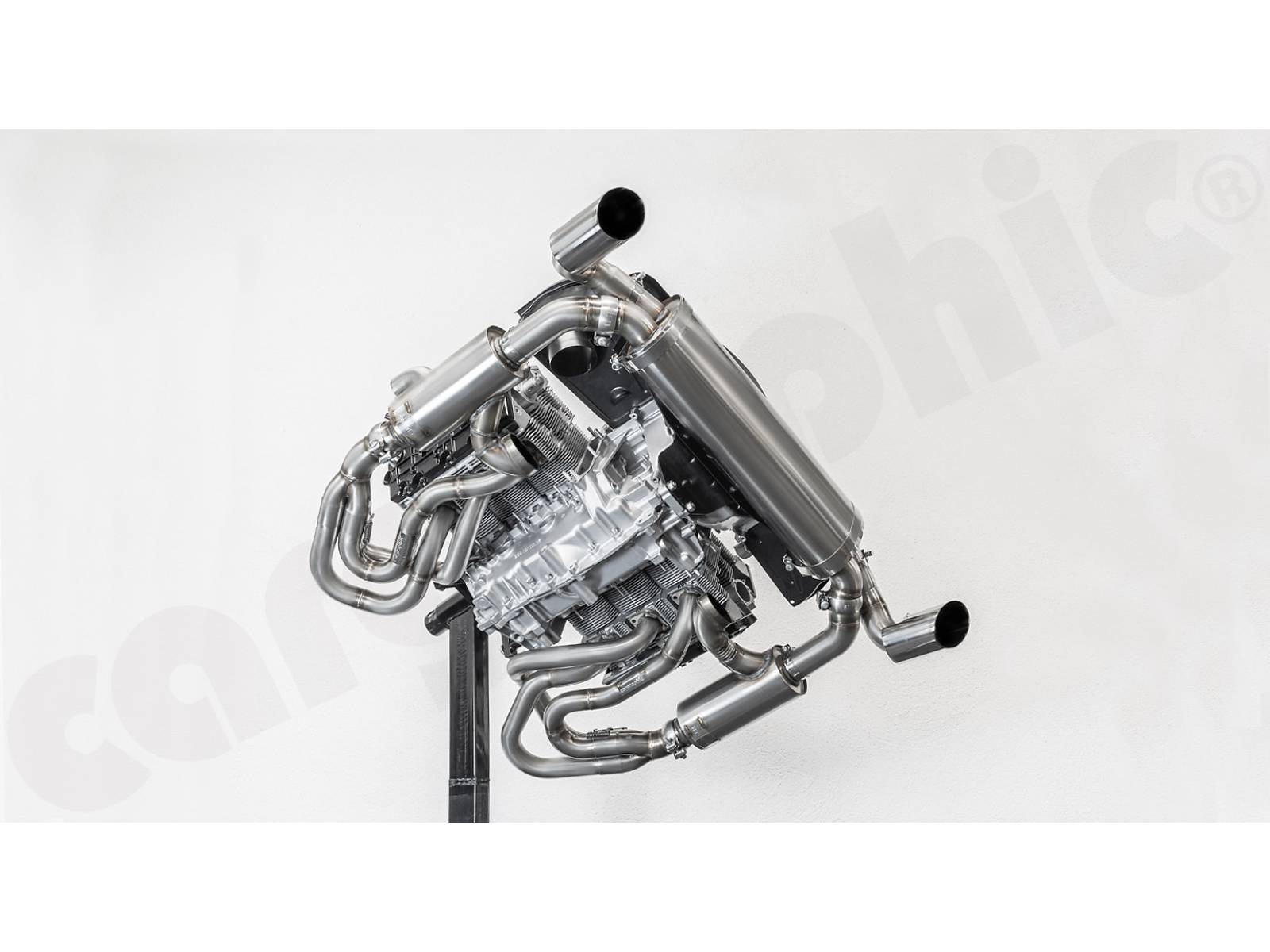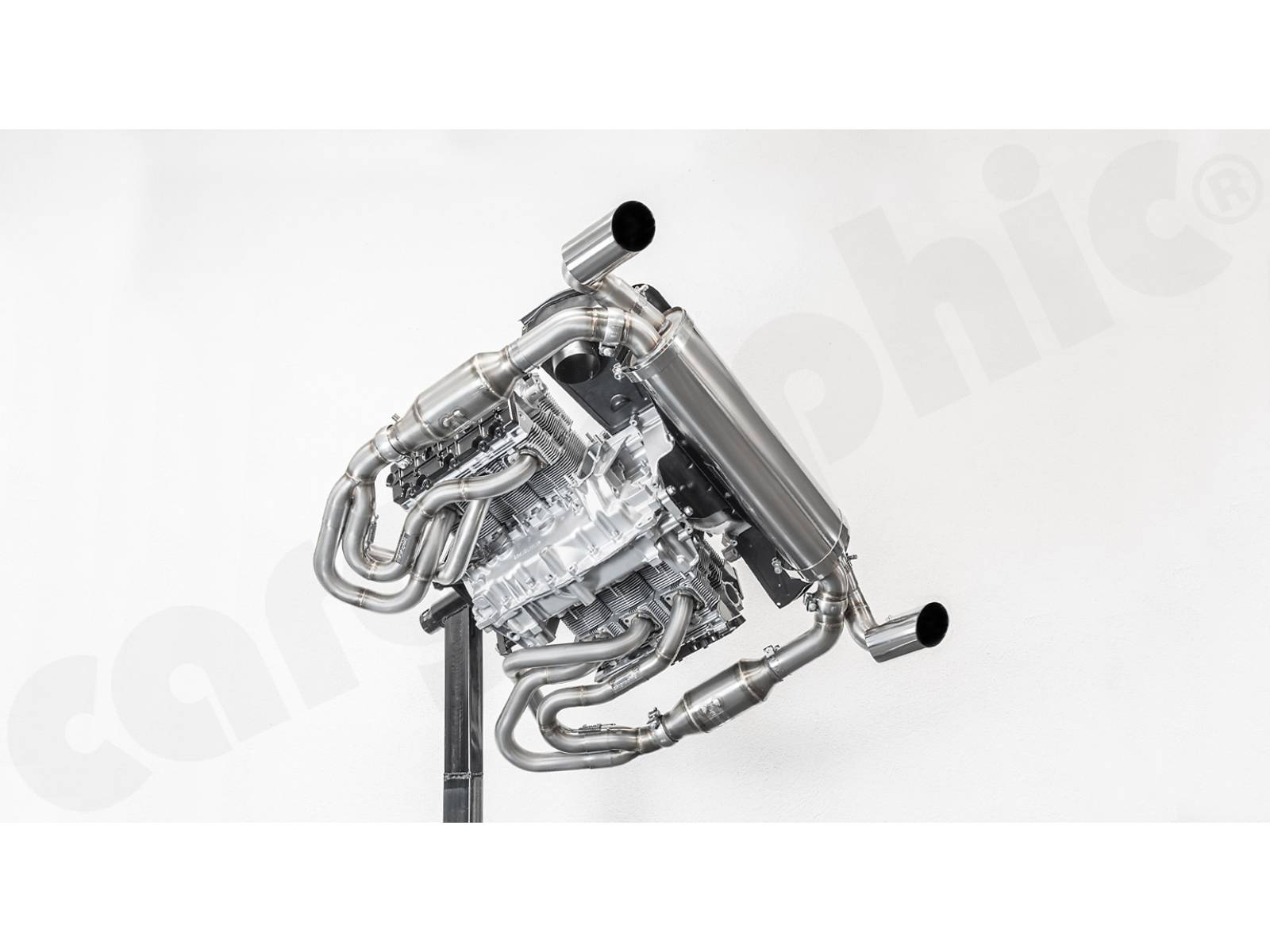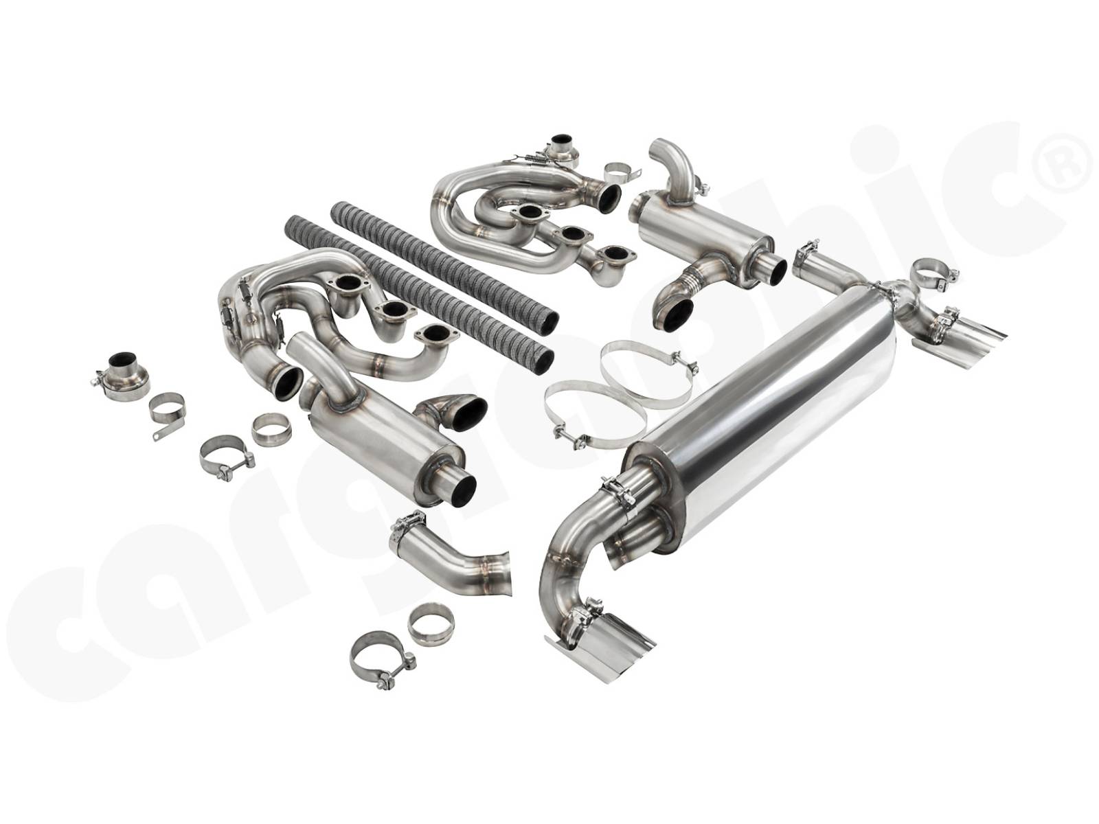 CARGRAPHIC GT 运动排气系统,带 ID42 GT 歧管,带/不带200cpsi 催化转化器,带加热功能和双流 AQ 后消音器,带 LH 和 RH 尾管出口。