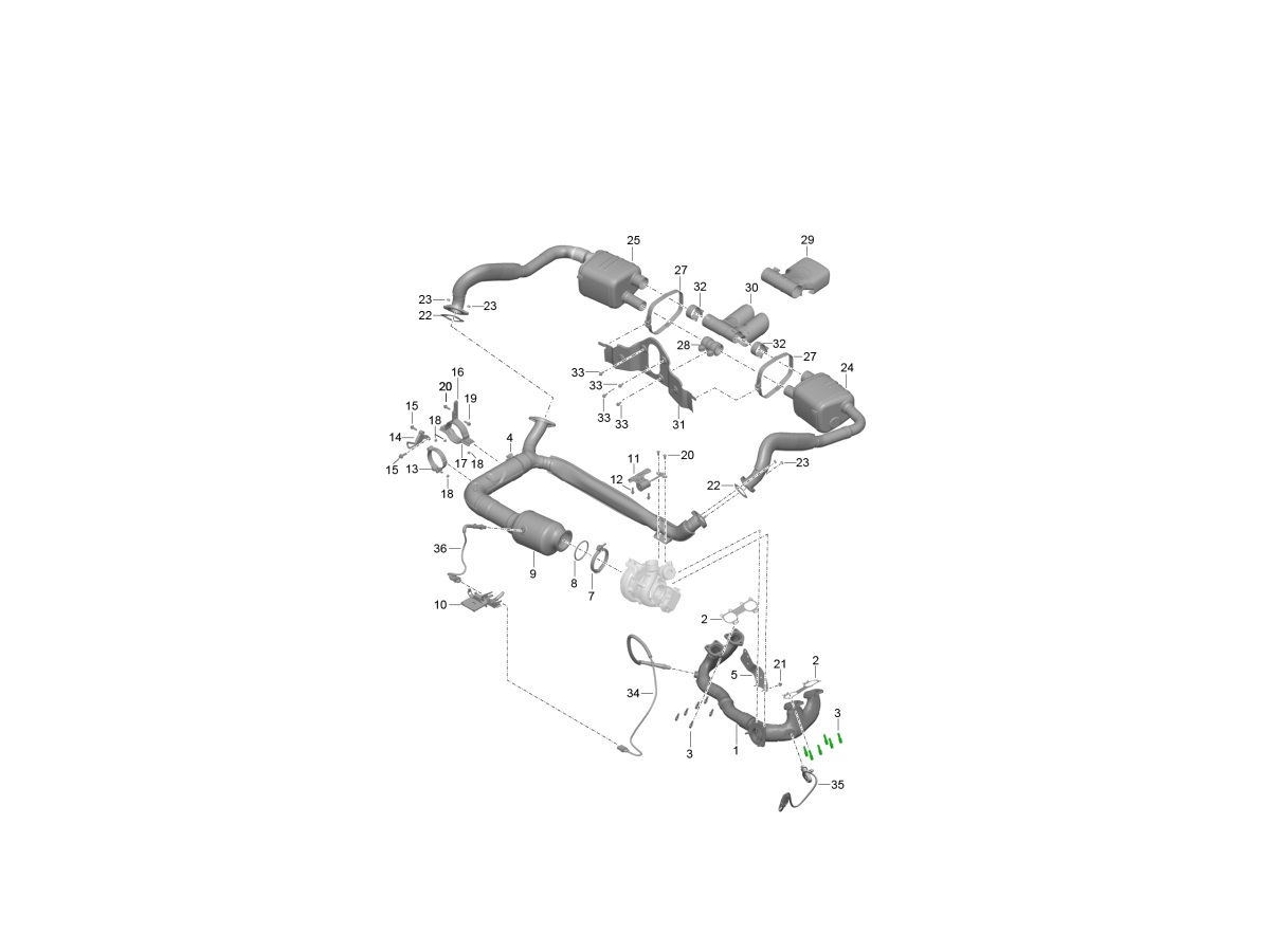 - 固定歧管、催化转换器和管道之间的排气接头和法兰。