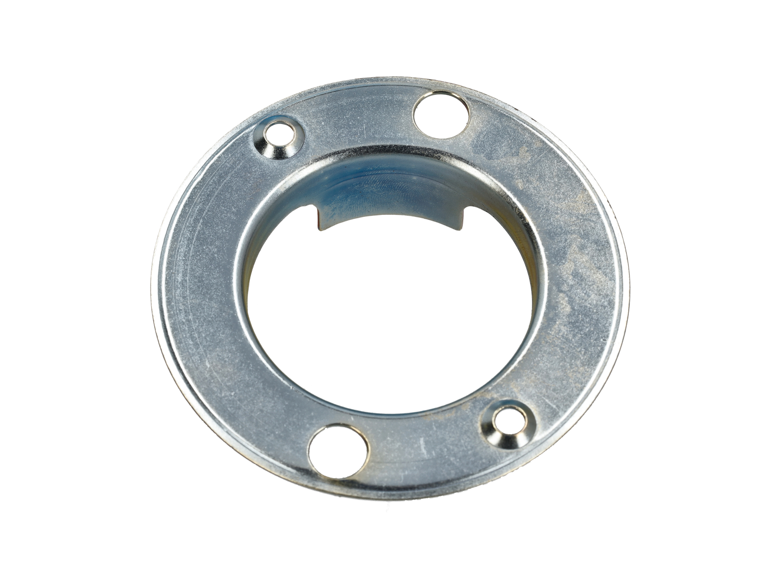 The cancel ring interacts with the turn signal mechanism and steering column to automatically cancel an engaged turn signal once the steering wheel returns toward center. It helps ensure turn indicators do not remain active after completing a turn.
