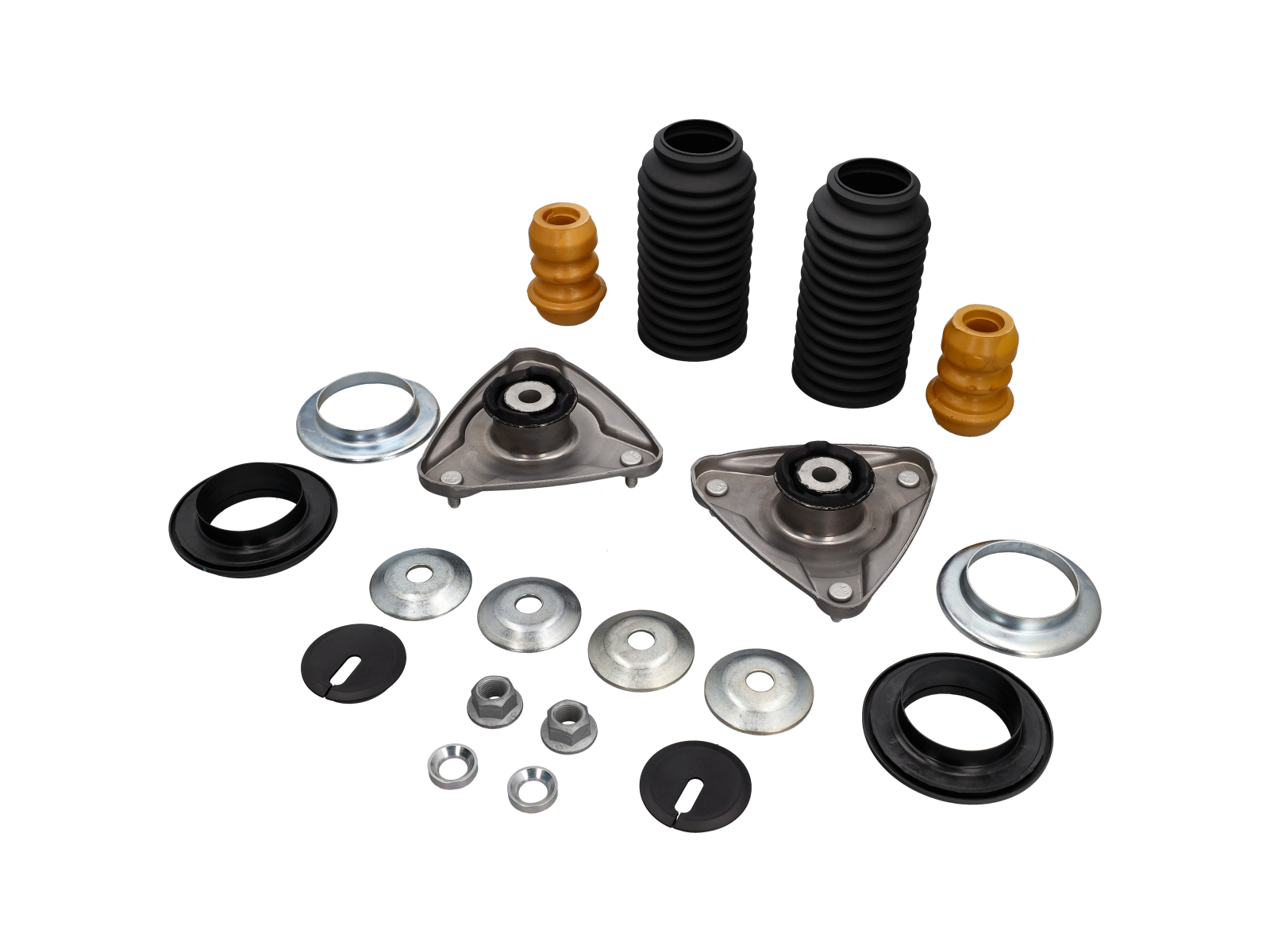 - The overhaul kit replaces the mount, the bearing, and all ancillary hardware (dust covers, bump stops, washers, lock nuts) so the top of your strut assembly is restored to a like-new condition — improving longevity, reducing noise, improving steering feel and restoring correct suspension geometry.