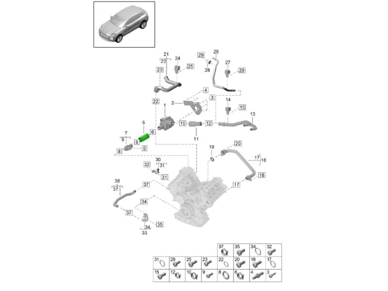 - Transportiert Motorkühlmittel durch den Kühlkreislauf, um die Wärme vom Motor abzuführen.