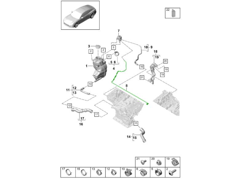 - Schützt benachbarte Bauteile , da auslaufendes Kühlmittel Kabel, Sensoren, Riemen und andere Teile im Motorraum beschädigen kann.