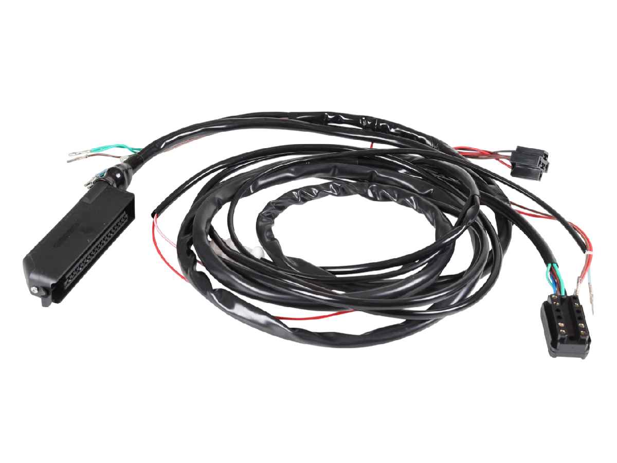 Dieser Kabelbaum verläuft vom Motorraum, insbesondere vom weißen Sauerstoffsensor, in den Fahrgastraum unter dem Beifahrersitz. Dieser Kabelbaum umfasst den Sauerstoffsensorstecker und das 35-polige Steckergehäuse, das mit dem Modul verbunden wird. Die Steckergehäuse für Beschleunigungsanreicherung und Diagnoseanschluss sind NLA und nicht im Lieferumfang enthalten (Kabel sind mit den richtigen Stiften/Buchsen abgeschlossen).