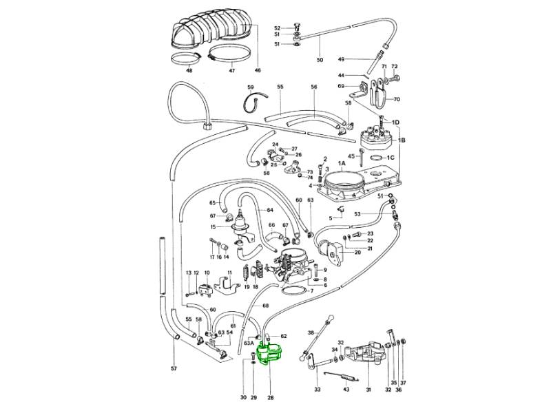 Einspritzanlage mit Kraftstoffleitungsventilen, Klappenanschluss und Warmlaufventil 911 TK ab 1972 107-40