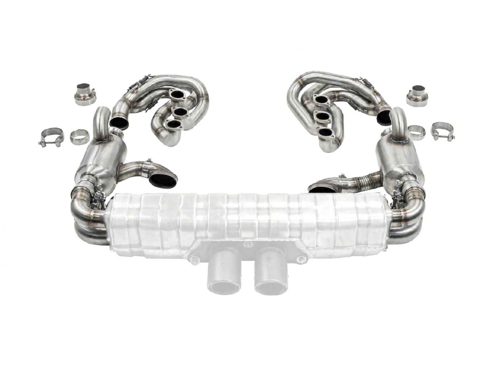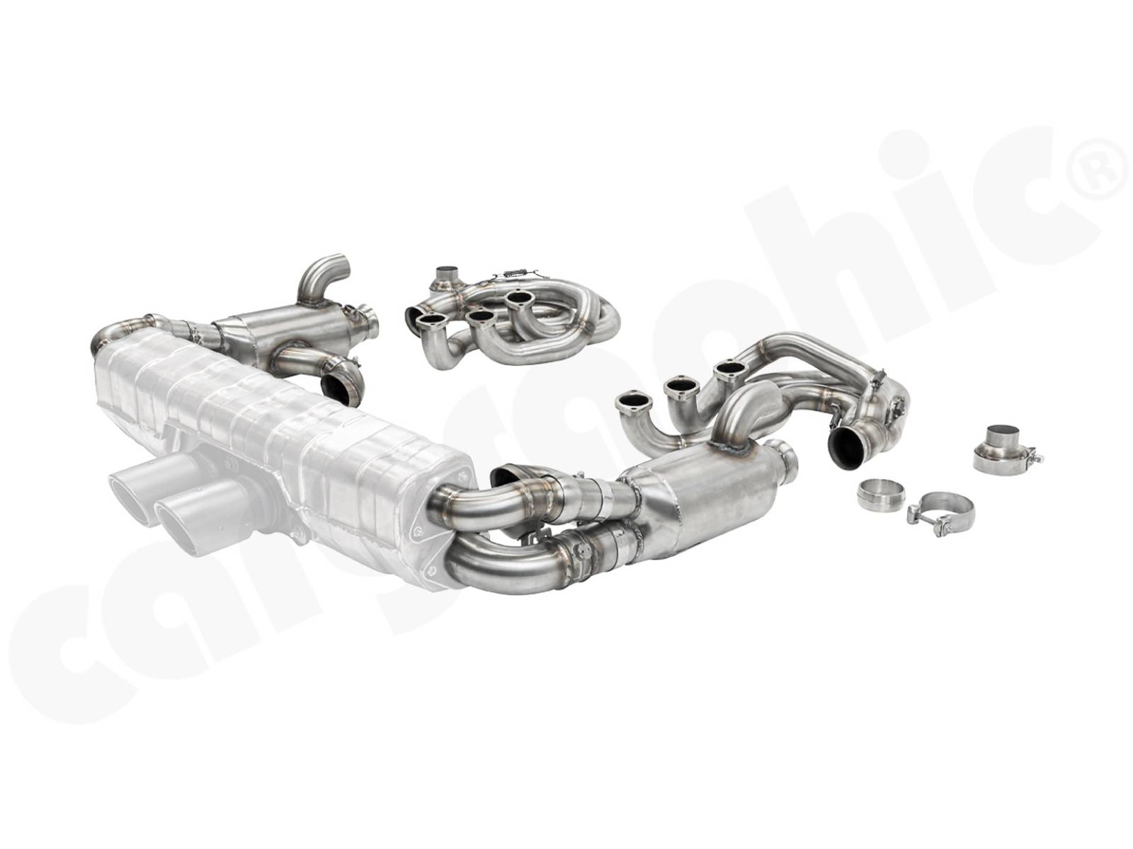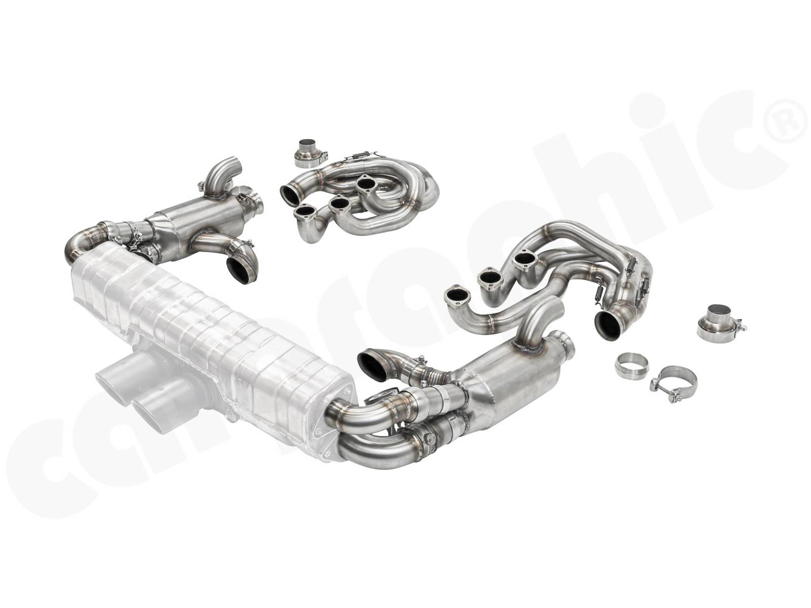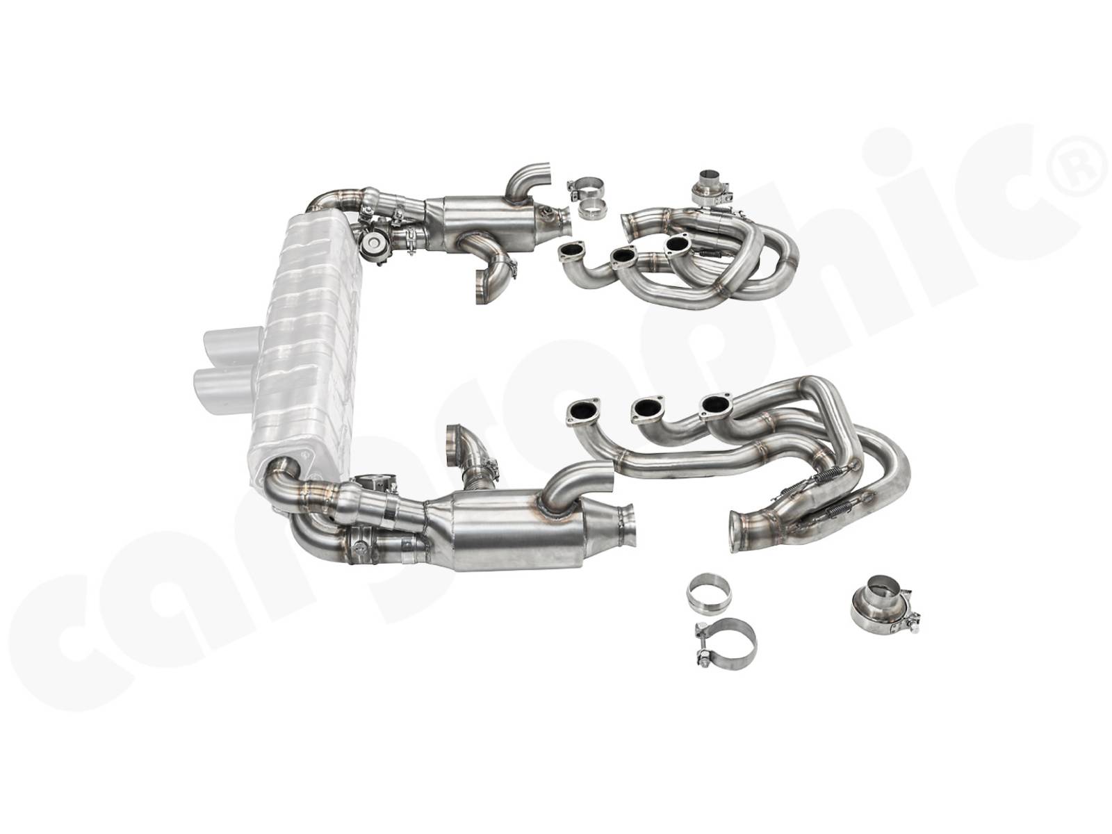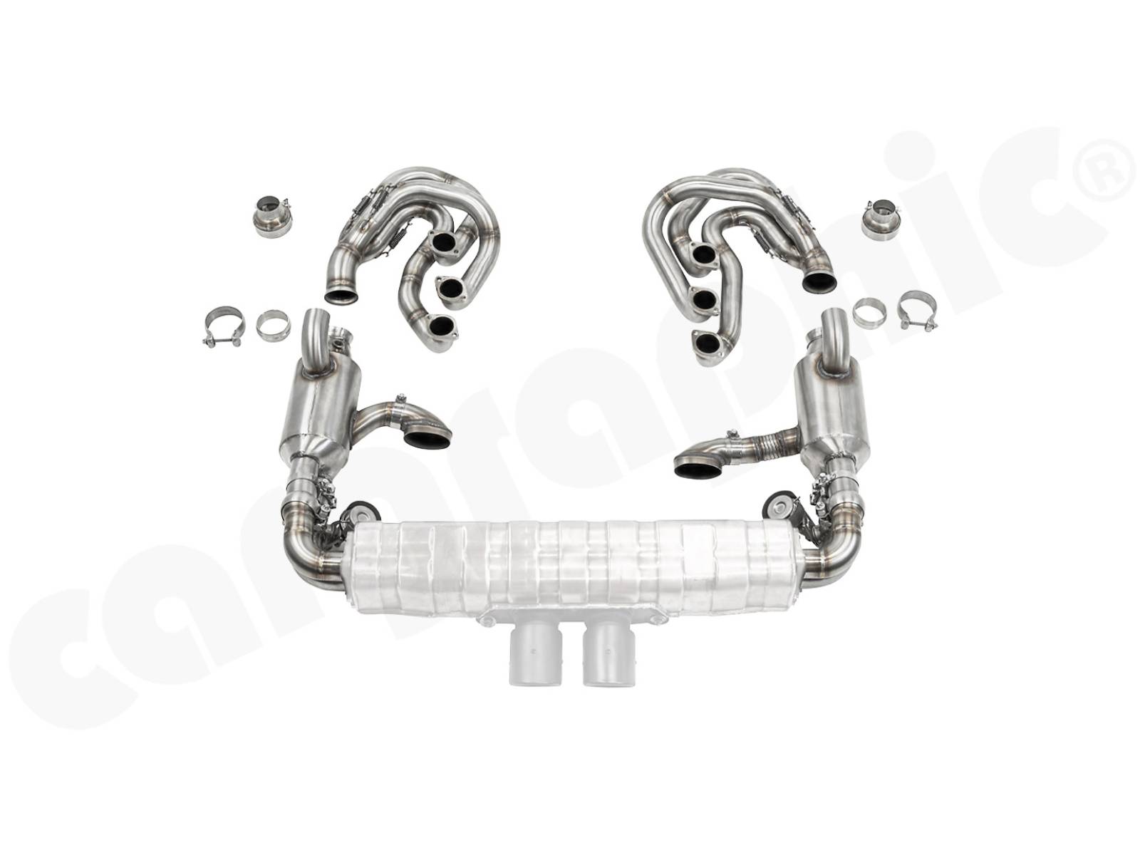 CARGRAPHIC GT Sport Auspuffanlage Rückbau mit ID42 GT Krümmersatz, mit / ohne 2x200cpsi Katalysatoren, mit Heizung und Auslassklappen - zur Verwendung mit OEM GT3 Endschalldämpfer.
