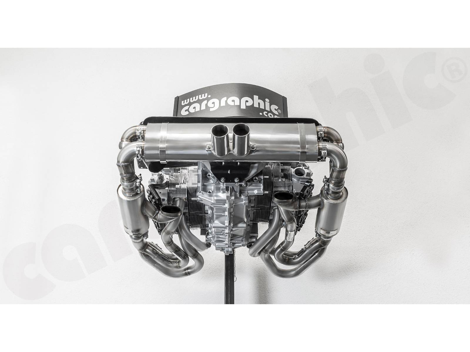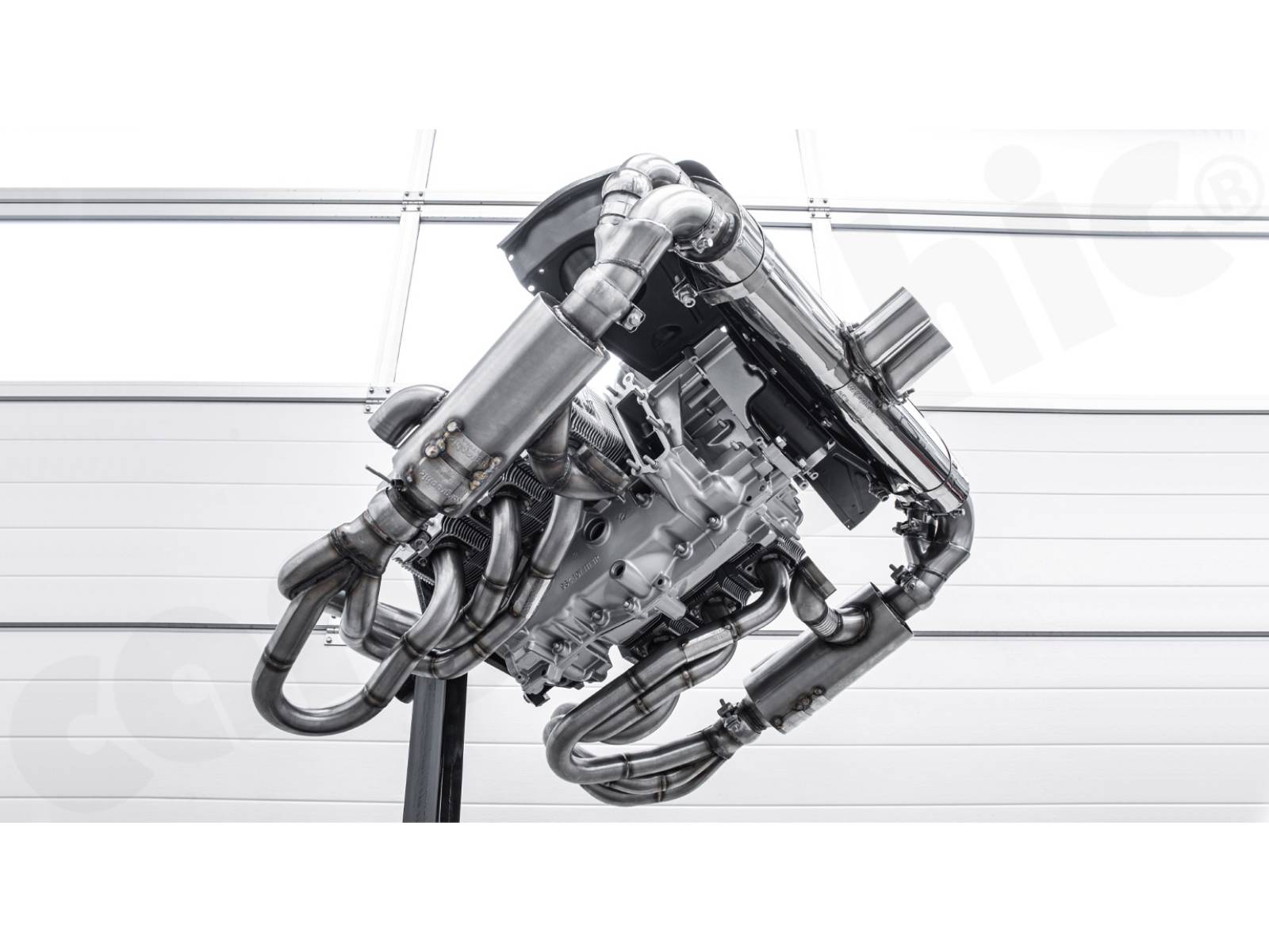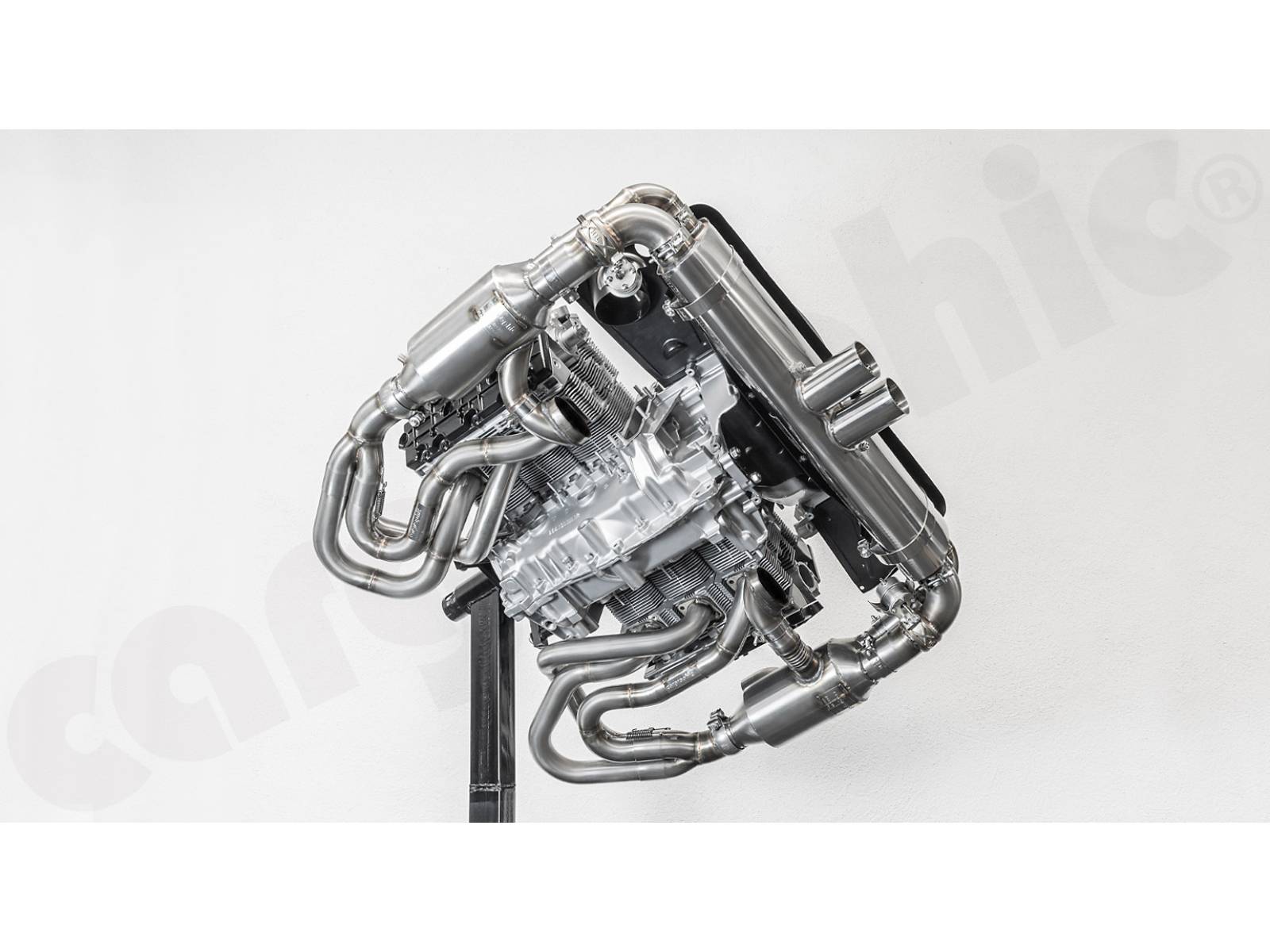 - Um einen maximalen Abstand zu den Ventildeckeln zu erreichen, wurden die Sammlerkästen und Schalldämpfer-Einlassflansche so weit wie möglich nach außen positioniert, um die Wärmeabstrahlung zu minimieren.