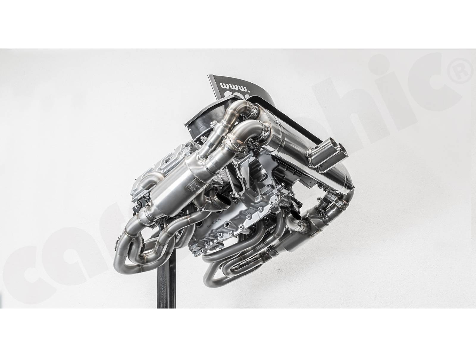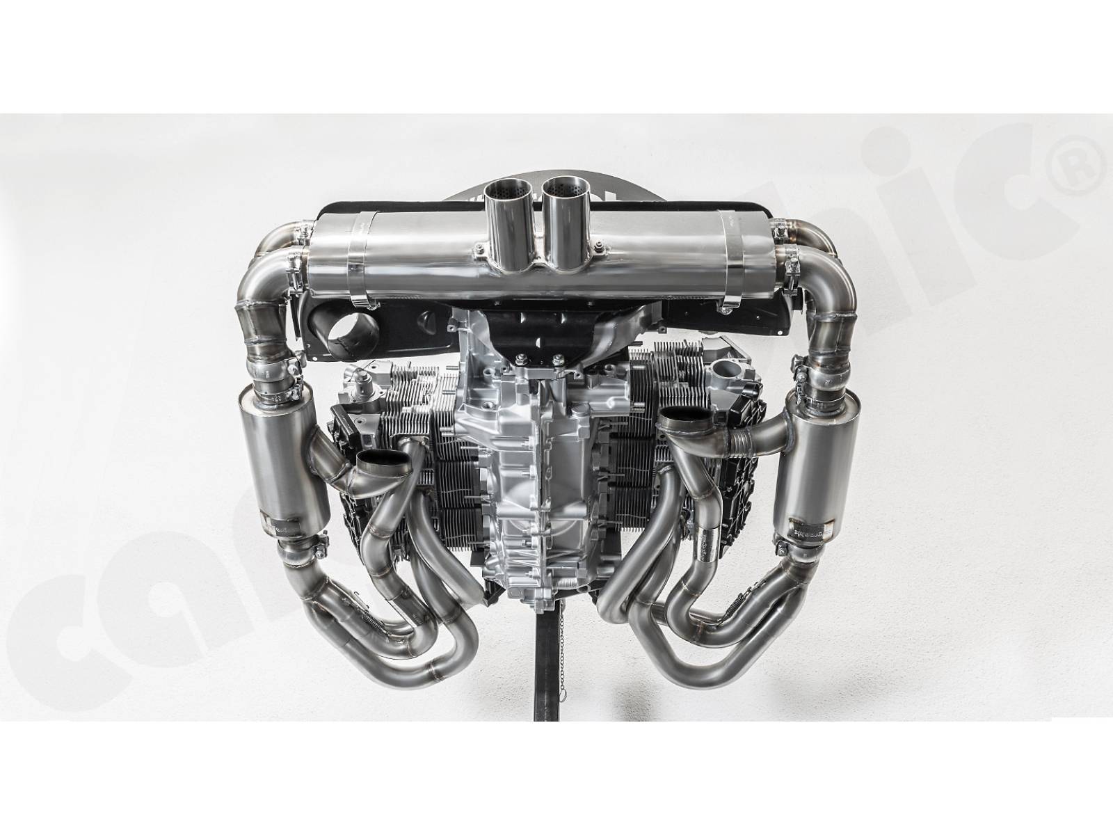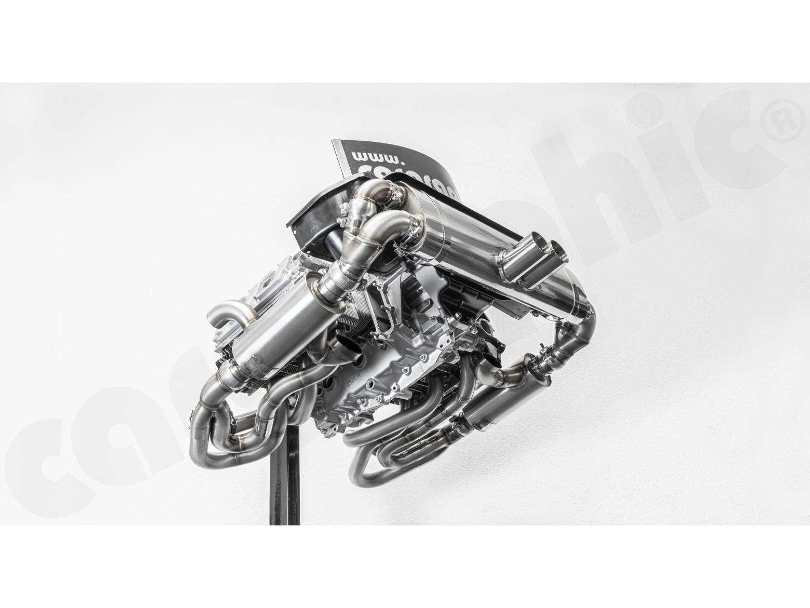 - Um einen maximalen Abstand zu den Ventildeckeln zu erreichen, wurden die Sammlerkästen und Schalldämpfer-Einlassflansche so weit wie möglich nach außen positioniert, um die Wärmeabstrahlung zu minimieren.