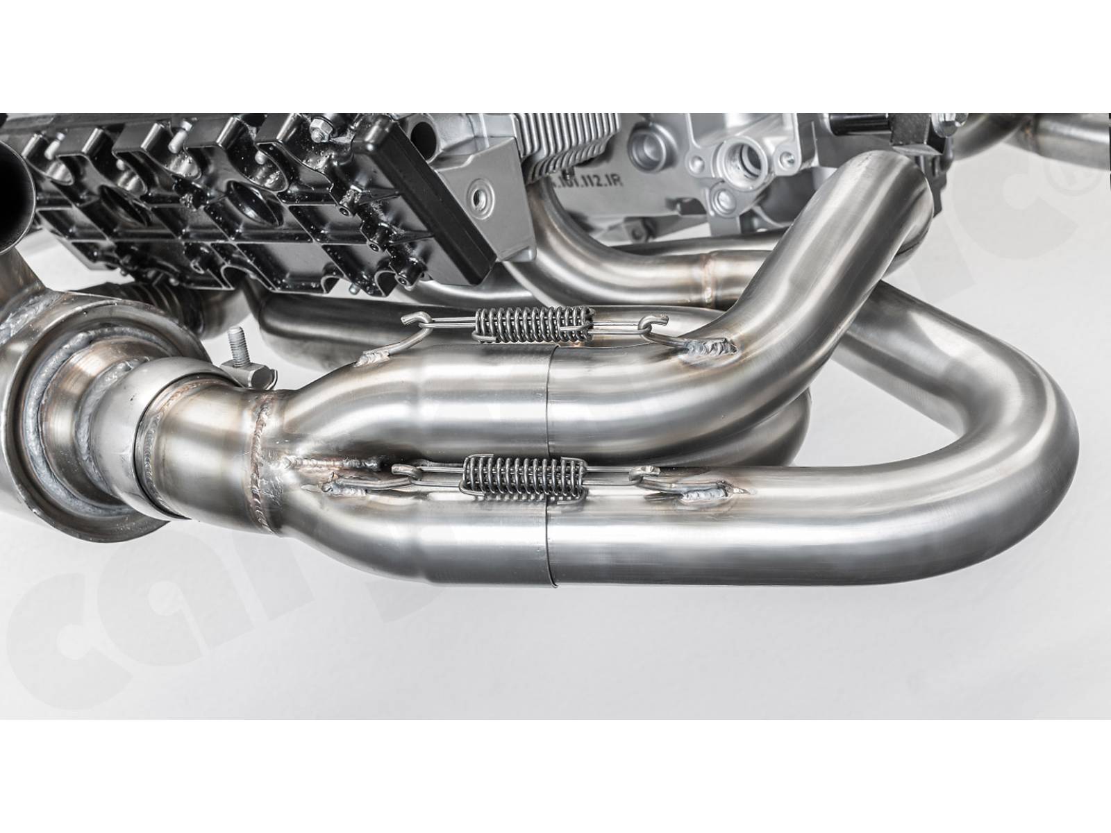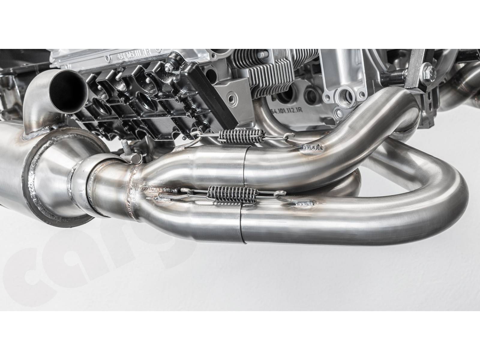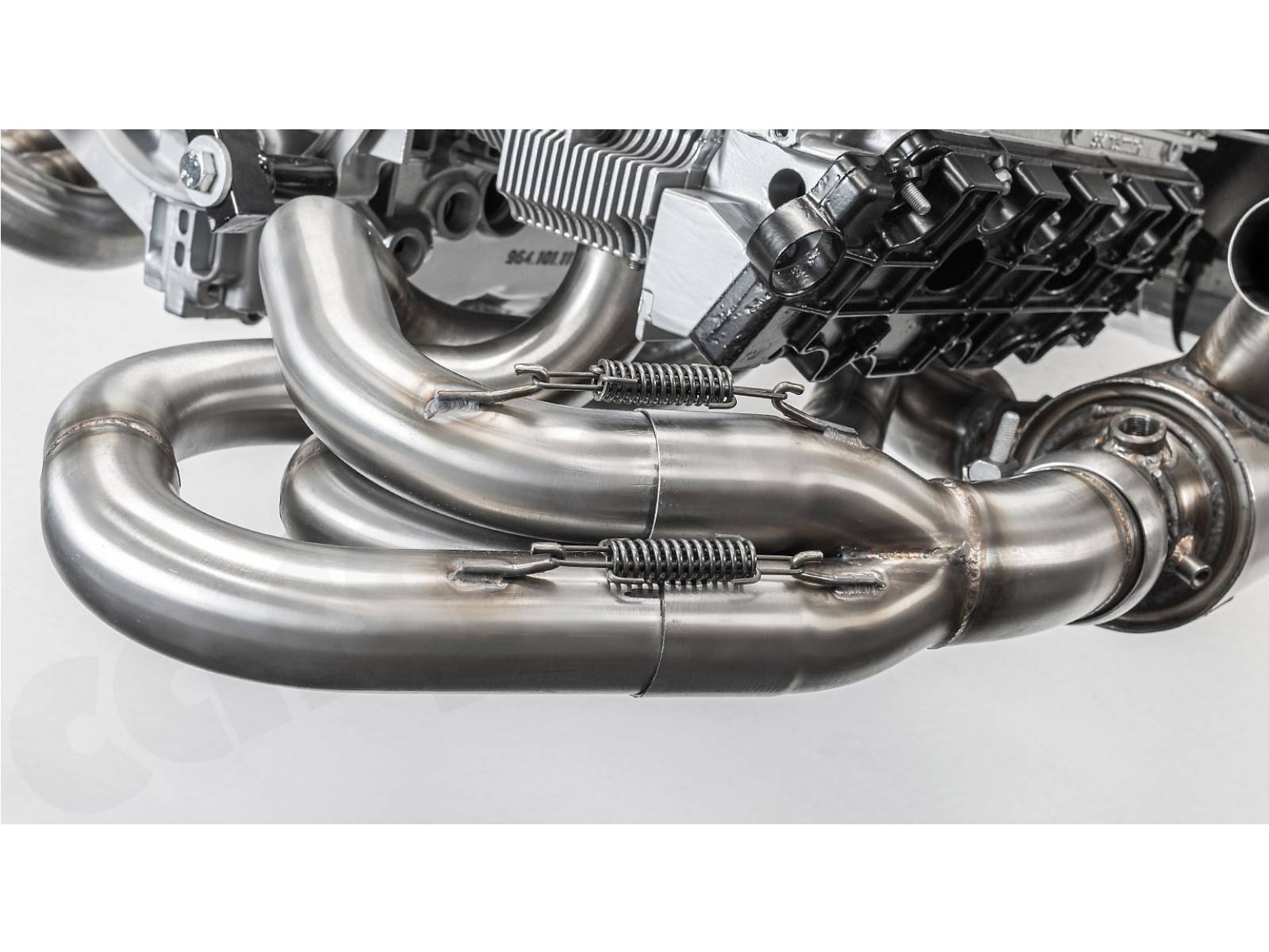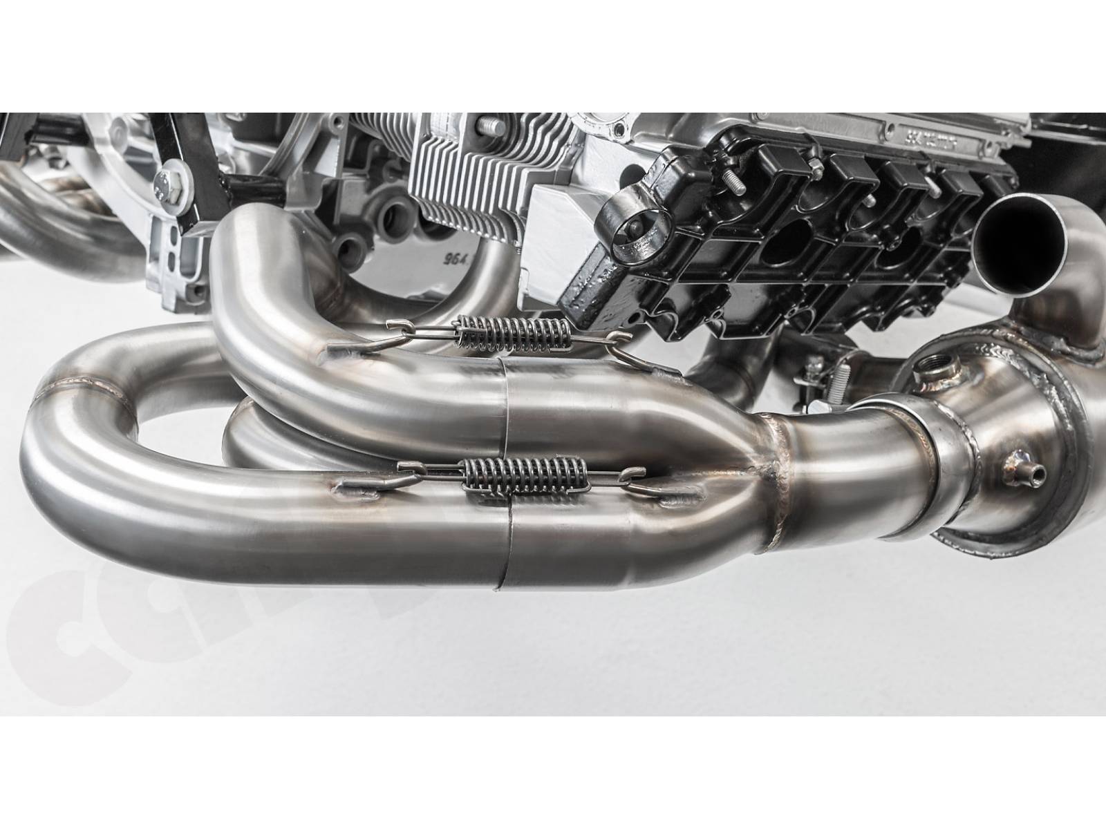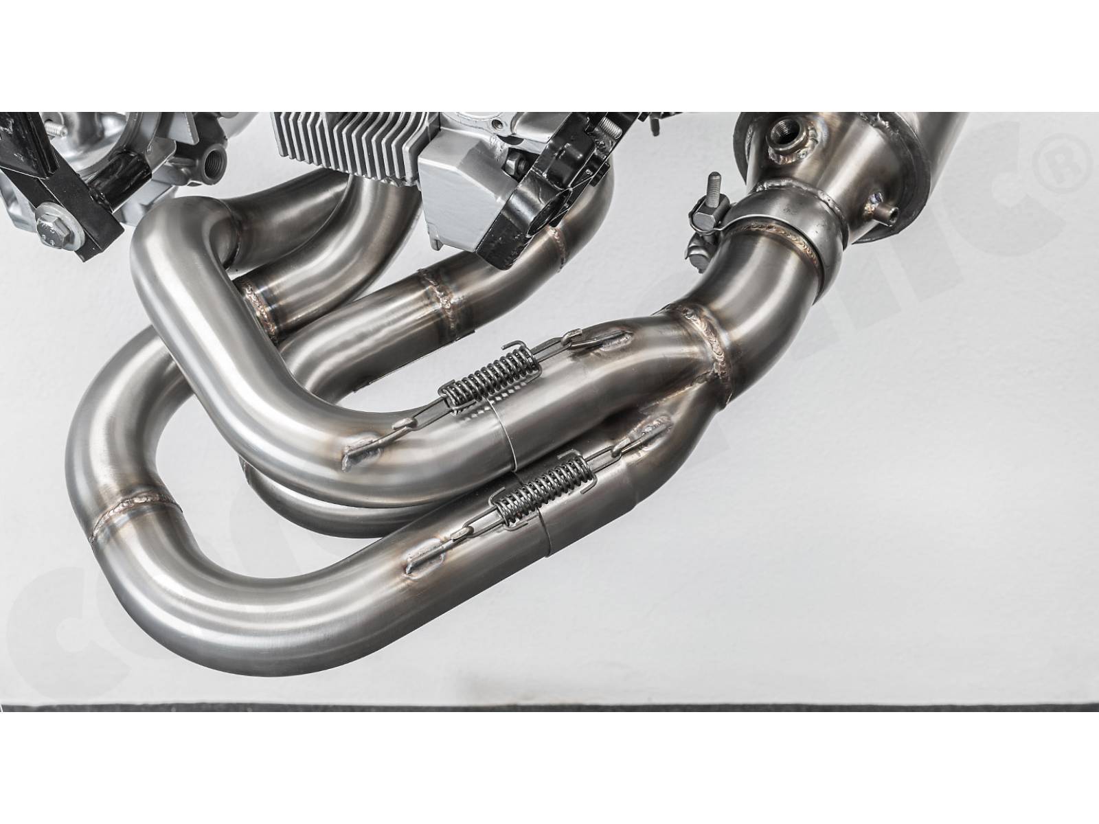 - Die Sammlerkästen und Schalldämpfer-Einlassflansche sind so weit wie möglich nach außen versetzt, um aufgrund der Wärmestrahlung einen maximalen Abstand zu den Ventildeckeln zu erreichen.