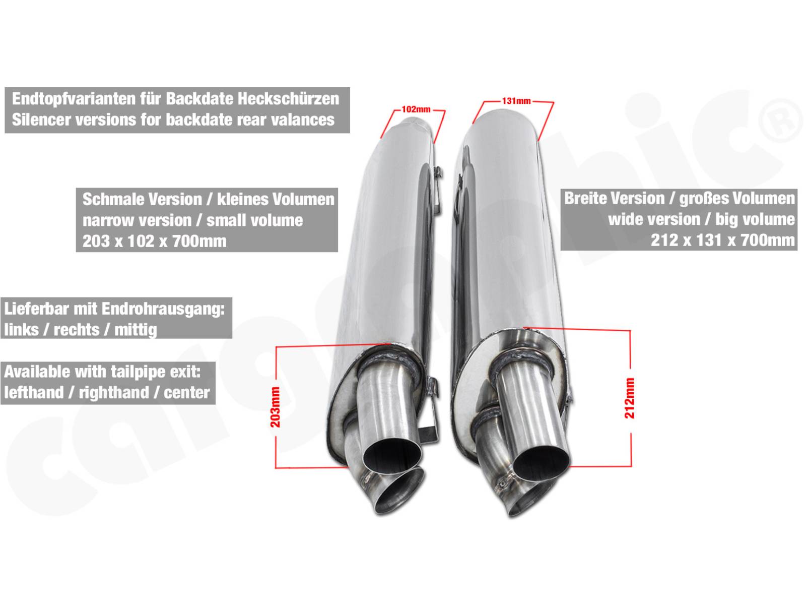 - CARGRAPHIC Sport-Endschalldämpfer mit Aeroquip-Flanschen, Endrohrauslass links und rechts;