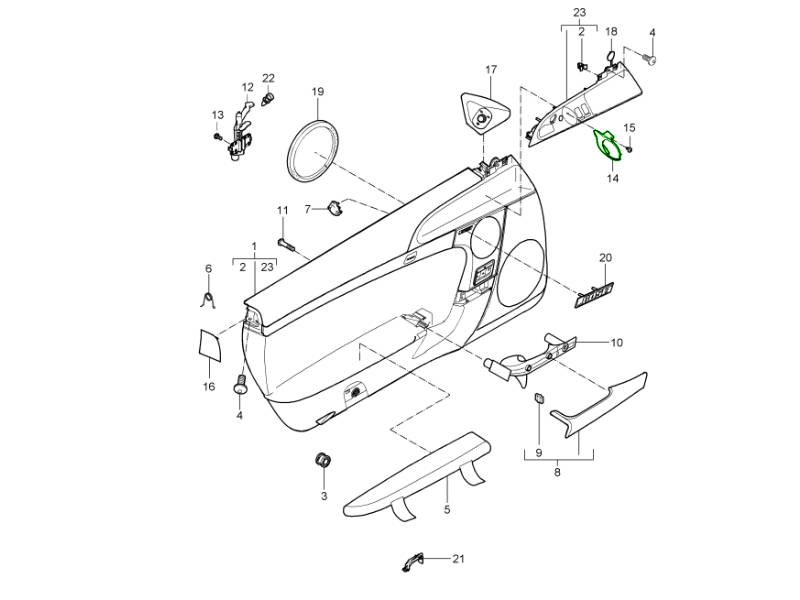 - Esta palanca es el componente mecánico que se acciona desde el interior del panel de la puerta para abrirla. Está sujeta al embellecedor interior del panel de la puerta y, al tirar de ella, activa el mecanismo de cierre.