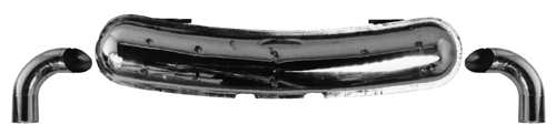 Escape trasero, con un tubo de escape de Ø60 mm y salida cromada. Fabricado en acero inoxidable de doble pared, interior y exterior, exactamente según especificaciones originales y con pintura resistente al calor de color gris.