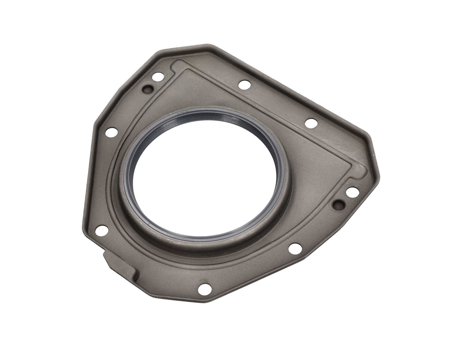 El sello del cigüeñal con brida evita fugas de aceite del motor en la salida del cigüeñal por la parte trasera del bloque. Funciona con rotación y presión de aceite constantes, asegurando que el motor se mantenga correctamente lubricado sin fugas de aceite al exterior.