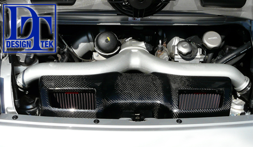 En la admisión GruppeM del Porsche Turbo 997 2006>> , los conductos de fábrica se sustituyen por fibra de carbono que protege del calor y que tiene entradas mejoradas para capturar la máxima cantidad de aire. Las temperaturas más bajas del aire de admisión conllevan mayores concentraciones de oxígeno, lo que permite explosiones más enérgicas y produce más caballos de fuerza y par motor. Por supuesto, nunca se sacrifica la fiabilidad: los materiales de filtro de aire K&N de alto flujo y alta eficiencia evitan que los contaminantes interfieran en el funcionamiento adecuado del motor.