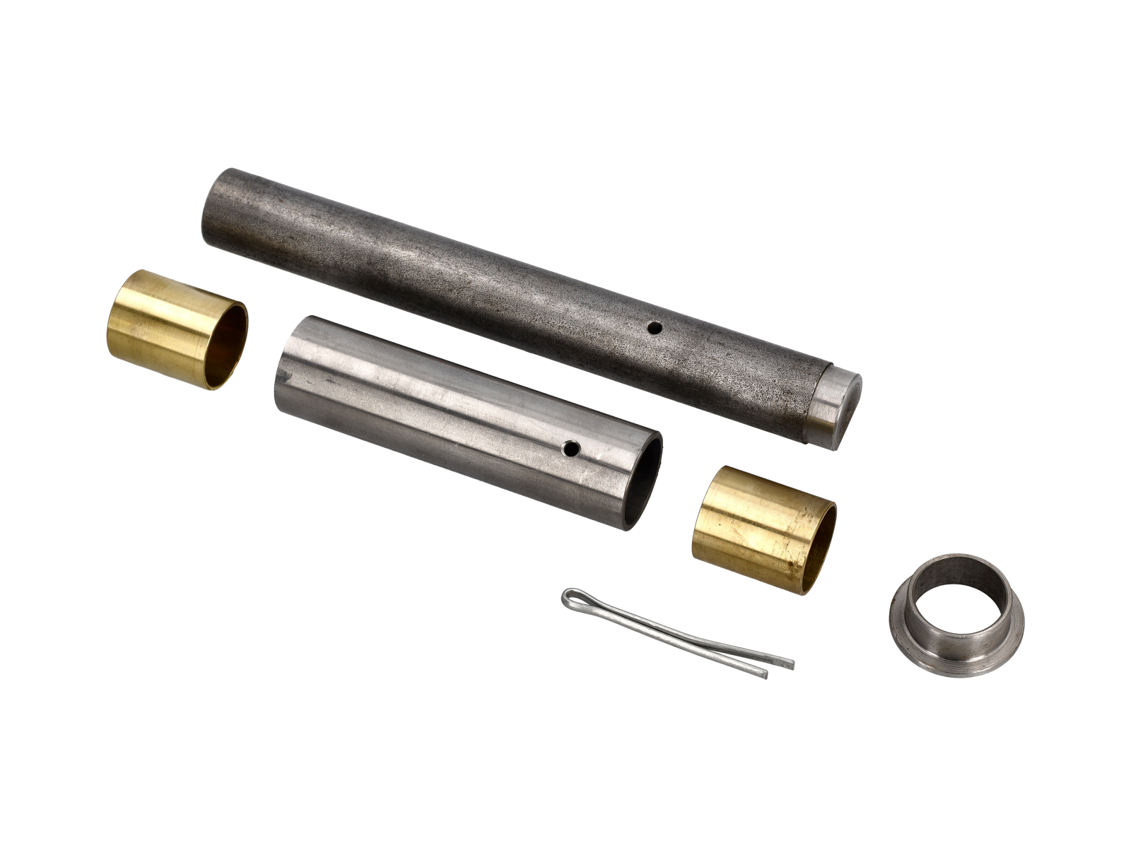 Ahora tenemos nuestro nuevo kit de eje de pedal Pre-A y 356A '53-'54, que incluye el eje, el tubo espaciador, los bujes y el pasador dividido: todo lo que necesita para un reemplazo completo.