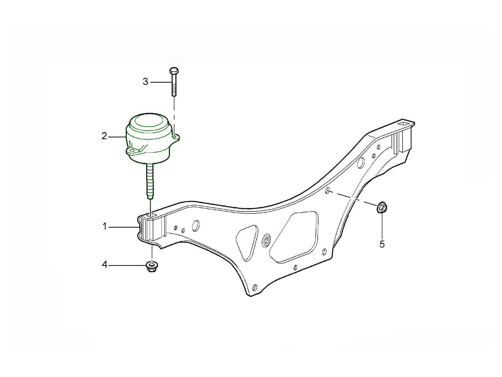 • Posición en el vehículo: Conjunto de soporte del motor delantero (lado izquierdo O derecho) – parte delantera del bloque del motor, fijado al chasis mediante un soporte de montaje.