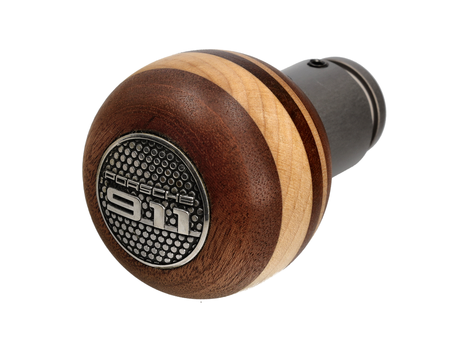La joya de la corona de este pomo de la palanca de cambios es la parte superior plateada estampada, con el Porsche 911 estampado.