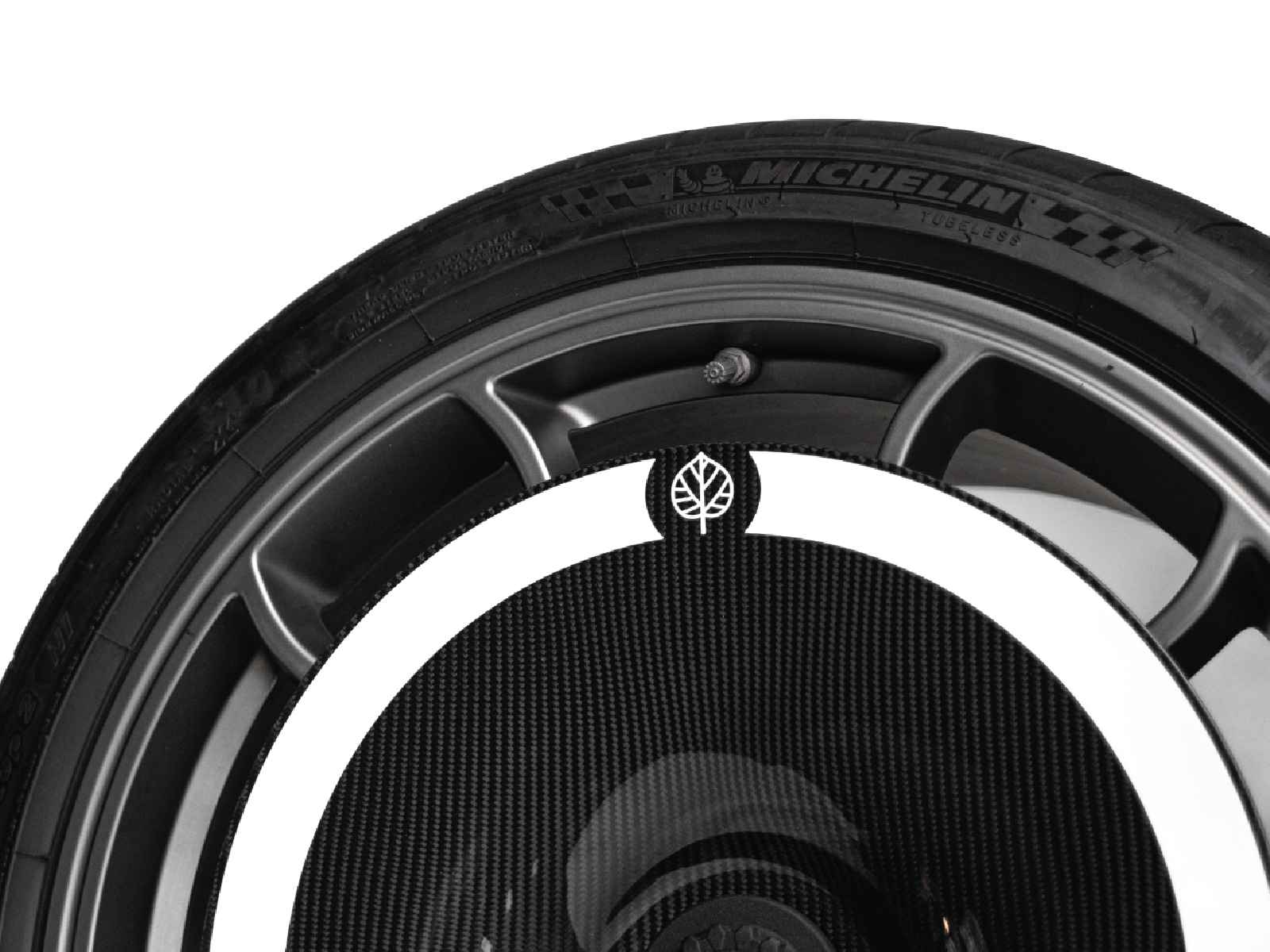 Los modernos discos aerodinámicos toman este principio del automovilismo deportivo y lo perfeccionan para su uso en carretera y circuito. Fabricados con fibra de carbono ligera, están diseñados para ser tanto funcionales como estéticamente atractivos. El entramado de carbono esculpido, sellado bajo acabados mate o brillantes, confiere al coche una estética decidida, propia de un coche de circuito: inmediatamente reconocible e innegablemente impactante. Aportan una energía visual que transmite seriedad: se trata de una máquina diseñada para la velocidad.