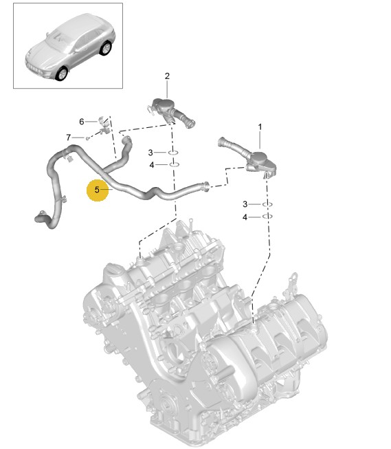 The crankcase breather hose is a key part of the engine’s positive crankcase ventilation (PCV) system. It channels pressurized air from the engine crankcase to the PCV valve (air/oil separator). The PCV valve captures and removes oil vapors, draining them back into the engine while sending the remaining pressurized air to the intake for combustion.