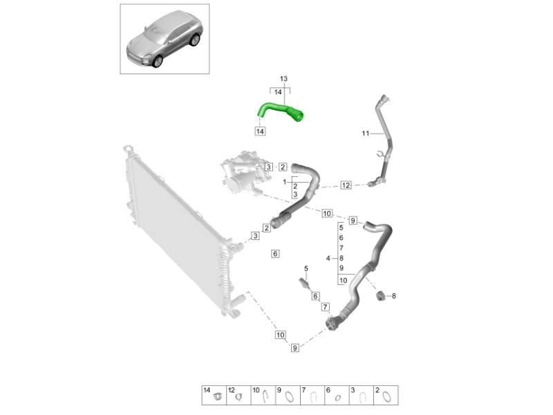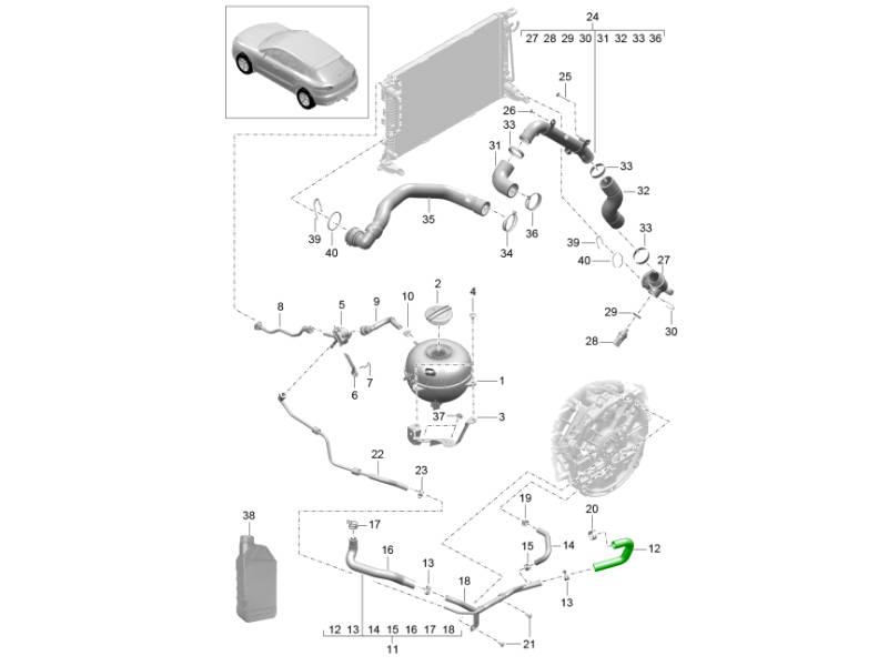 Le tuyau de ventilation du liquide de refroidissement moteur (partie supérieure centrale) est un composant du système de refroidissement conforme aux spécifications d'origine, conçu pour évacuer l'air et la vapeur emprisonnés dans la partie supérieure du circuit de refroidissement du moteur. Positionné au centre du circuit de refroidissement supérieur, ce tuyau joue un rôle essentiel dans le maintien d'une circulation optimale du liquide de refroidissement et dans l'équilibre de la pression du système.