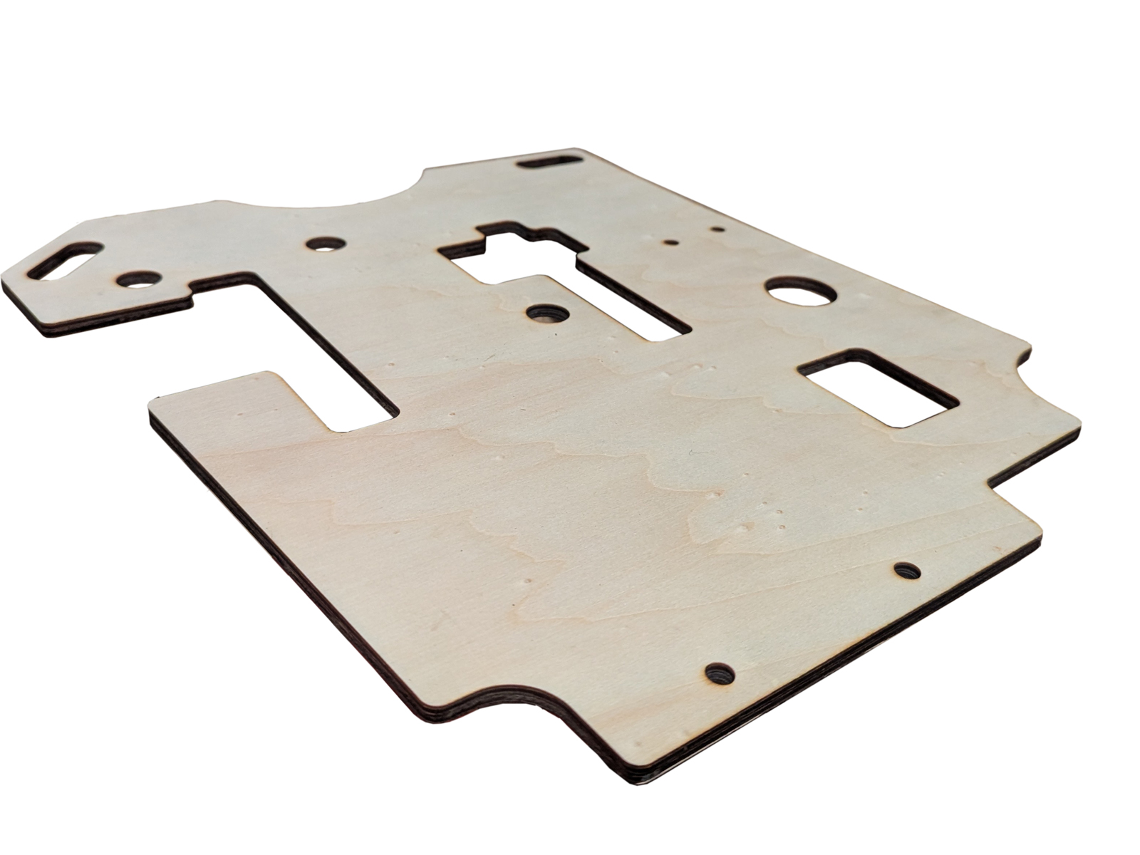 Plancher/support de plancher pour Porsche 964 (version conduite à droite, sans repose-pieds sous le châssis). Placé sous le plancher côté conducteur, il soutient le pédalier et contribue à la rigidité et à la stabilité du plancher. Réplique exacte de la pièce d'origine, il est fabriqué en contreplaqué de haute qualité, similaire à celui utilisé.