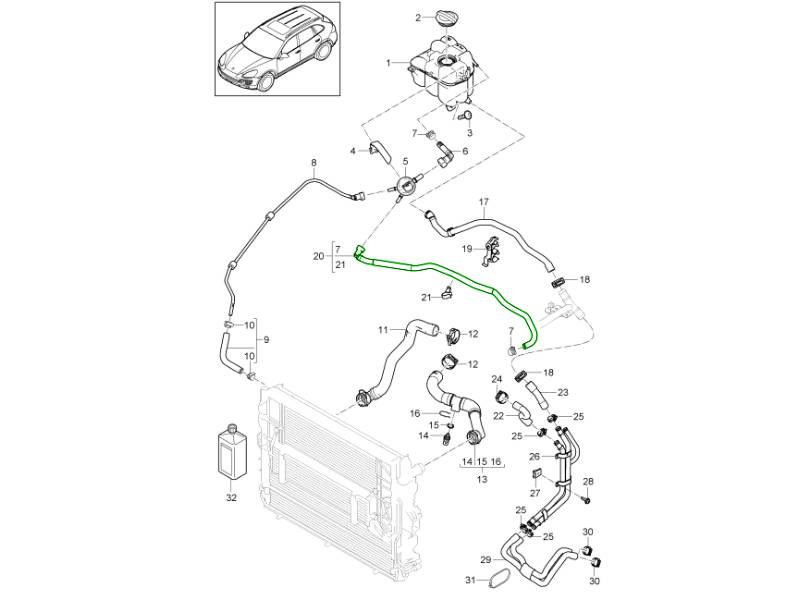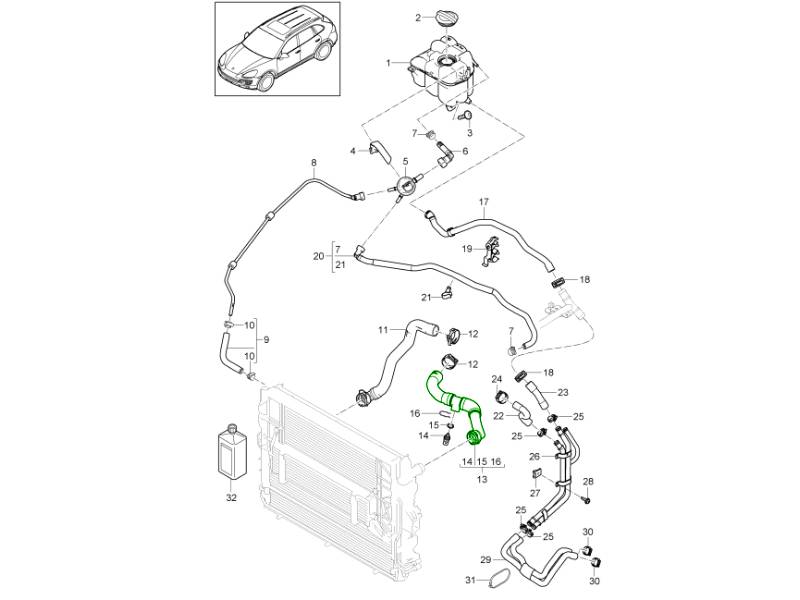 La durite de liquide de refroidissement sans sonde de température (retour) est un composant du système de refroidissement compatible avec les pièces d'origine. Elle est conçue pour renvoyer le liquide de refroidissement dans le circuit de refroidissement du moteur après son passage à travers les principaux composants du système. Cette durite ne comporte pas d'orifice pour sonde de température, ce qui la rend spécifique aux configurations du système de refroidissement de certains Porsche Cayenne 958.