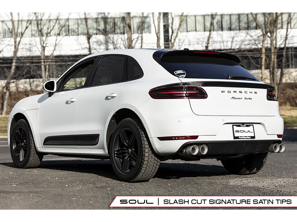 Le Porsche Macan 2.0T est remarquablement raffiné dès sa sortie d'usine, avec une isolation phonique optimale et un flux d'échappement fortement atténué. Lors du développement, les ingénieurs SOUL ont constaté que les sorties intermédiaires d'origine étaient déjà fluides et performantes, mais que les silencieux arrière limitaient les performances et le caractère. L'échappement à silencieux résonant SOUL remplace les silencieux d'origine par un tuyau droit léger de 6,35 cm (2,5 pouces) à collier, intégrant des résonateurs de compétition pour atténuer le bourdonnement de l'habitacle tout en conservant une sonorité d'échappement agressive. Ce système résonant direct libère une sonorité supplémentaire du turbo et du moteur à l'accélération, tout en préservant un bruit de croisière plus discret. La configuration en Y des sorties d'échappement se fait par quatre sorties d'échappement, optimisant la distribution des gaz d'échappement et permettant un alignement réglable des sorties pour un rendu affleurant ou décalé.