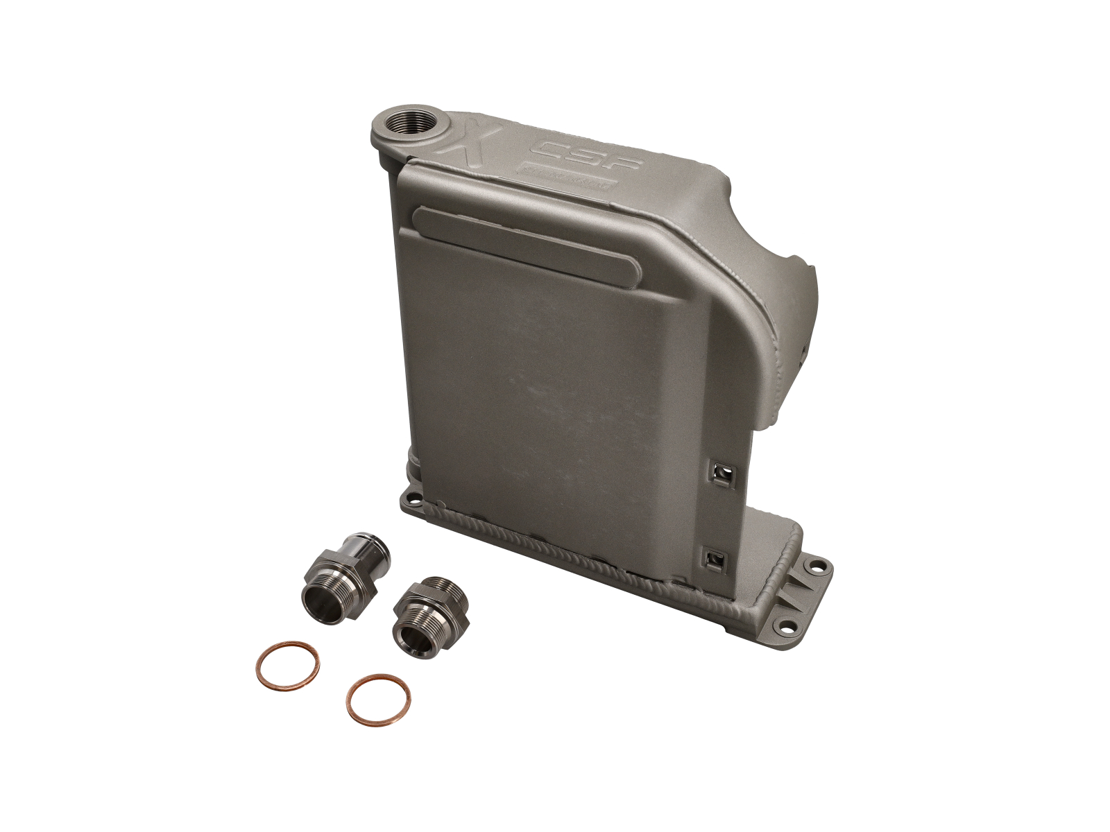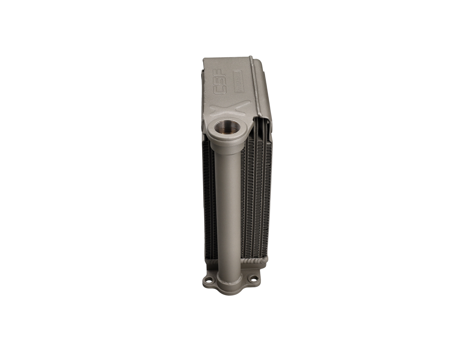 La plaque de base du refroidisseur étant souvent source de problèmes, CSF a cherché à l'améliorer au maximum. Au lieu de la pièce moulée d'origine, le refroidisseur CSF utilise une plaque en aluminium usinée CNC. Celle-ci offre une surface de montage parfaitement plane, à la fois plus robuste et plus résistante à la déformation. On remarque également une conception hélicoïdale spéciale qui renforce la structure tout en minimisant le poids.