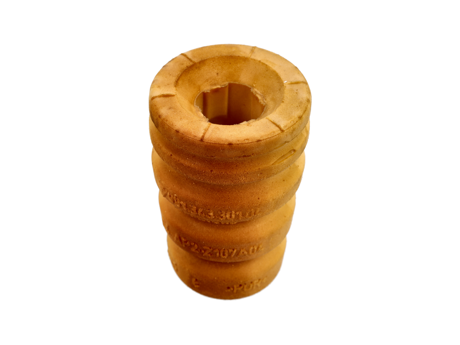 - Le caoutchouc d'usine agit comme un ressort en série avec la jambe de force. Cette action de ressort en caoutchouc est complètement non amortie et réduit la capacité des entretoises à contrôler la surface de contact du pneu. Le roulement sphérique permet à l'amortisseur de jambe de force de faire son travail et de contrôler la zone de contact.