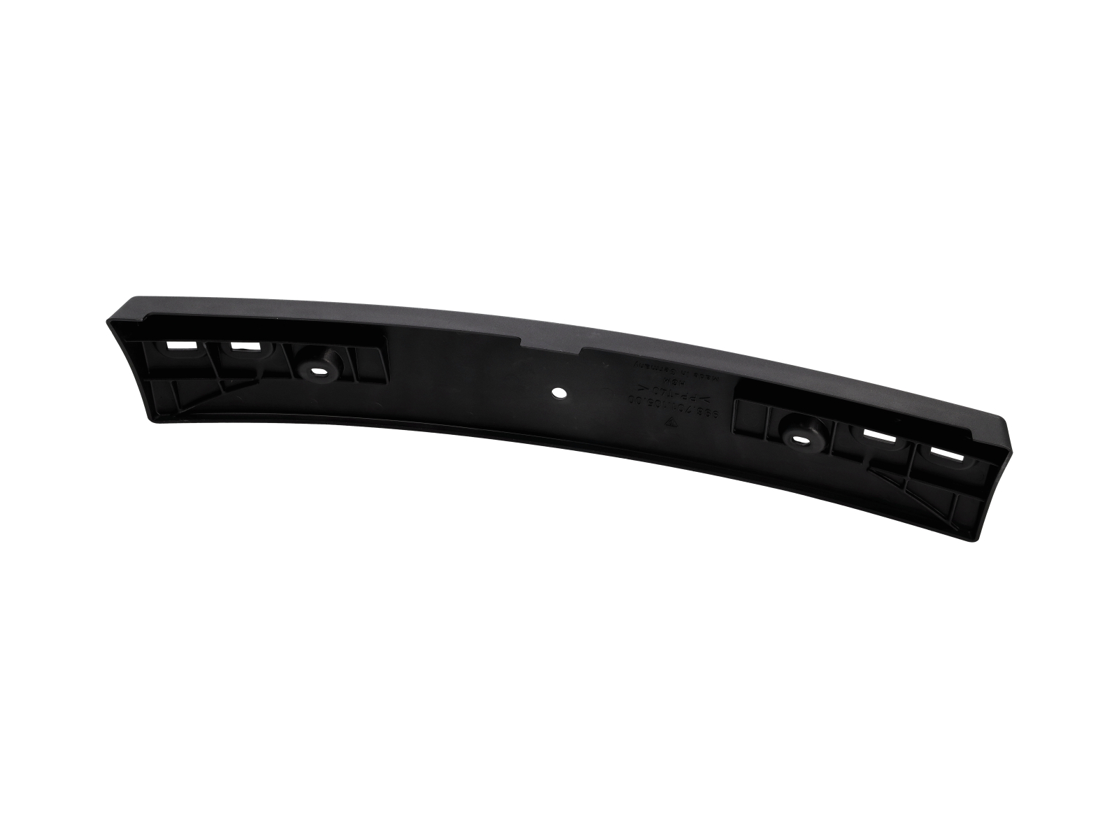 Ce support soutient et fixe la plaque d'immatriculation au pare-chocs avant du véhicule, remplacement direct de la pièce d'usine Porsche.