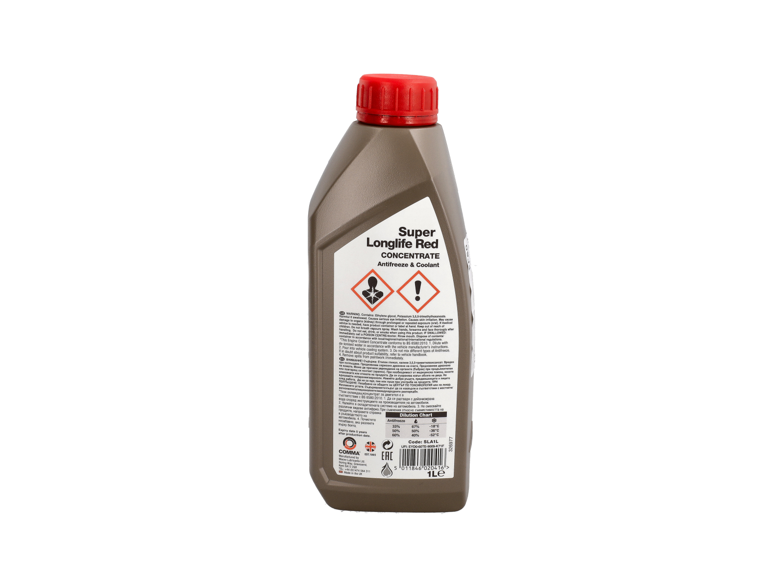 L'antigel et le liquide de refroidissement d'été sont un antigel et un liquide de refroidissement moteur à base d'éthylène glycol, intégrant la dernière technologie d'acide organique (OAT). Il offre une protection hivernale jusqu'à -36°C, tout en ayant été développé pour remplacer BS6580 (2010) et VW G-12/TL-774D & VW G-12+/TL-774F, MAN 278 & MAN 324, MB 325.3, Renault 41-01-001. Il peut être laissé dans le système comme liquide de refroidissement et inhibiteur de rouille pendant une durée maximale de 5 ans.