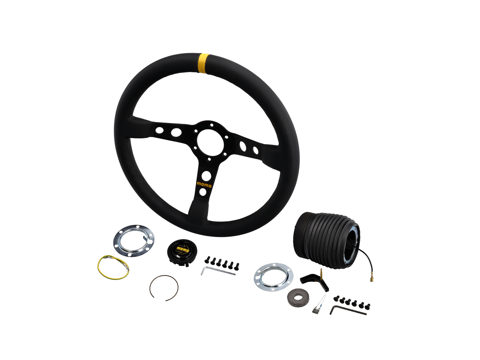 Le volant MOMO MOD.07 est conçu pour être utilisé dans les berlines et les voitures de rallye avec le plat profond offrant au conducteur un contrôle maximal et le marqueur en cuir jaune sur le dessus fournissant une référence rapide à la position de la direction.