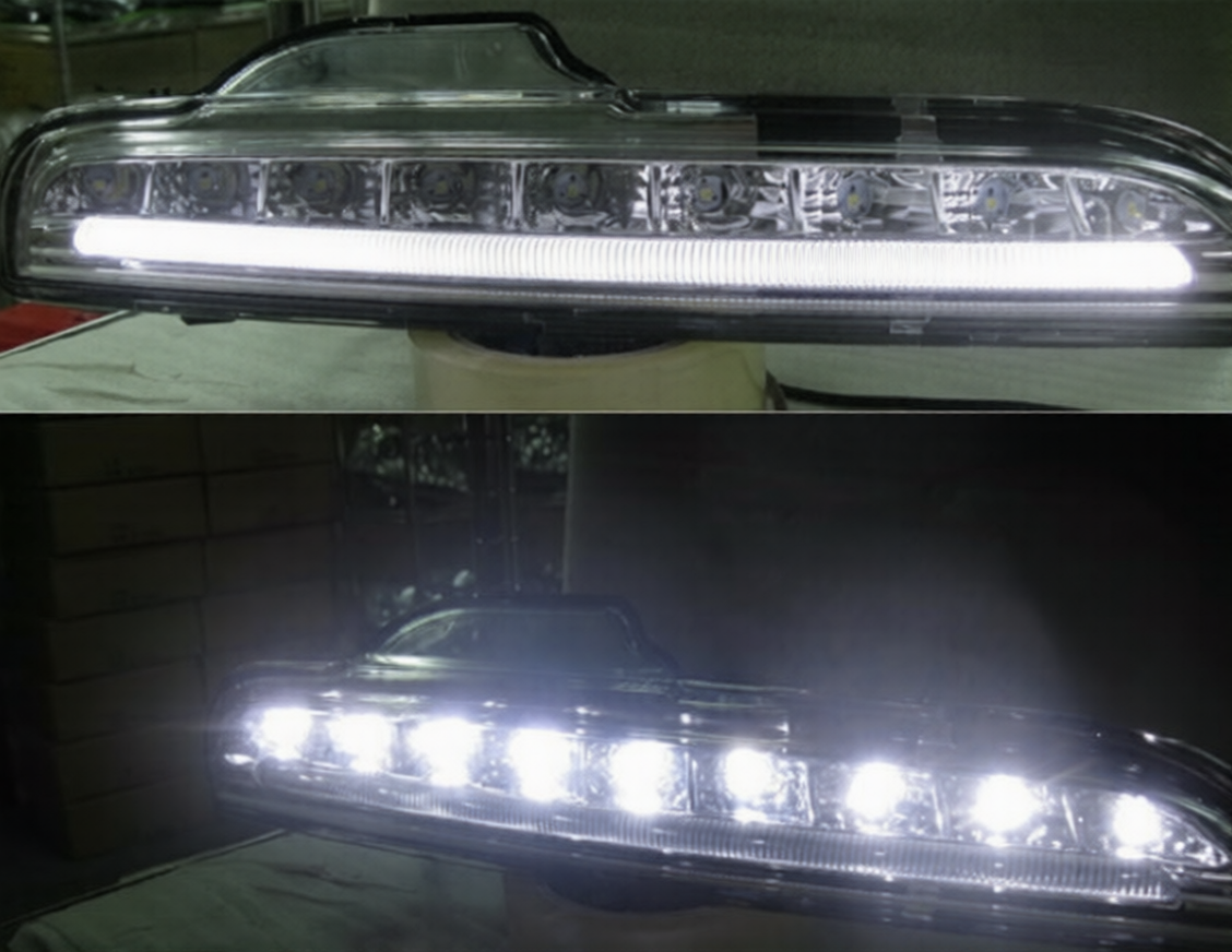 Feux de jour ( la bande centrale DRL fonctionne une fois que votre interrupteur d'éclairage latéral est en position marche ) avec phares antibrouillard LED et clignotants latéraux LED.