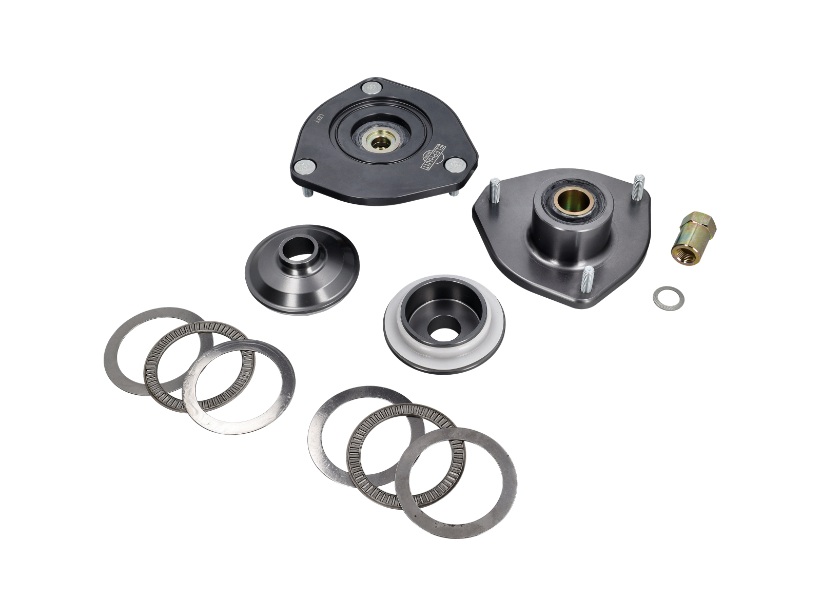 Ces plaques utilisent des roulements sphériques en acier trempé à haute résistance et remplacent directement les plaques d'usine qui utilisent des bagues en caoutchouc conformes. Les roulements sphériques revêtus de téflon utilisés dans notre kit sont entièrement sans entretien et ne nécessitent aucune lubrification supplémentaire. Ces plaques sont scellées pour empêcher la contamination par l'eau ou la saleté, prolongeant ainsi la durée de vie des roulements. Cela rend le kit de plaque de carrossage Elephant Racing parfait pour une utilisation régulière dans la rue, ainsi que pour les abus prolongés sur la piste de course.