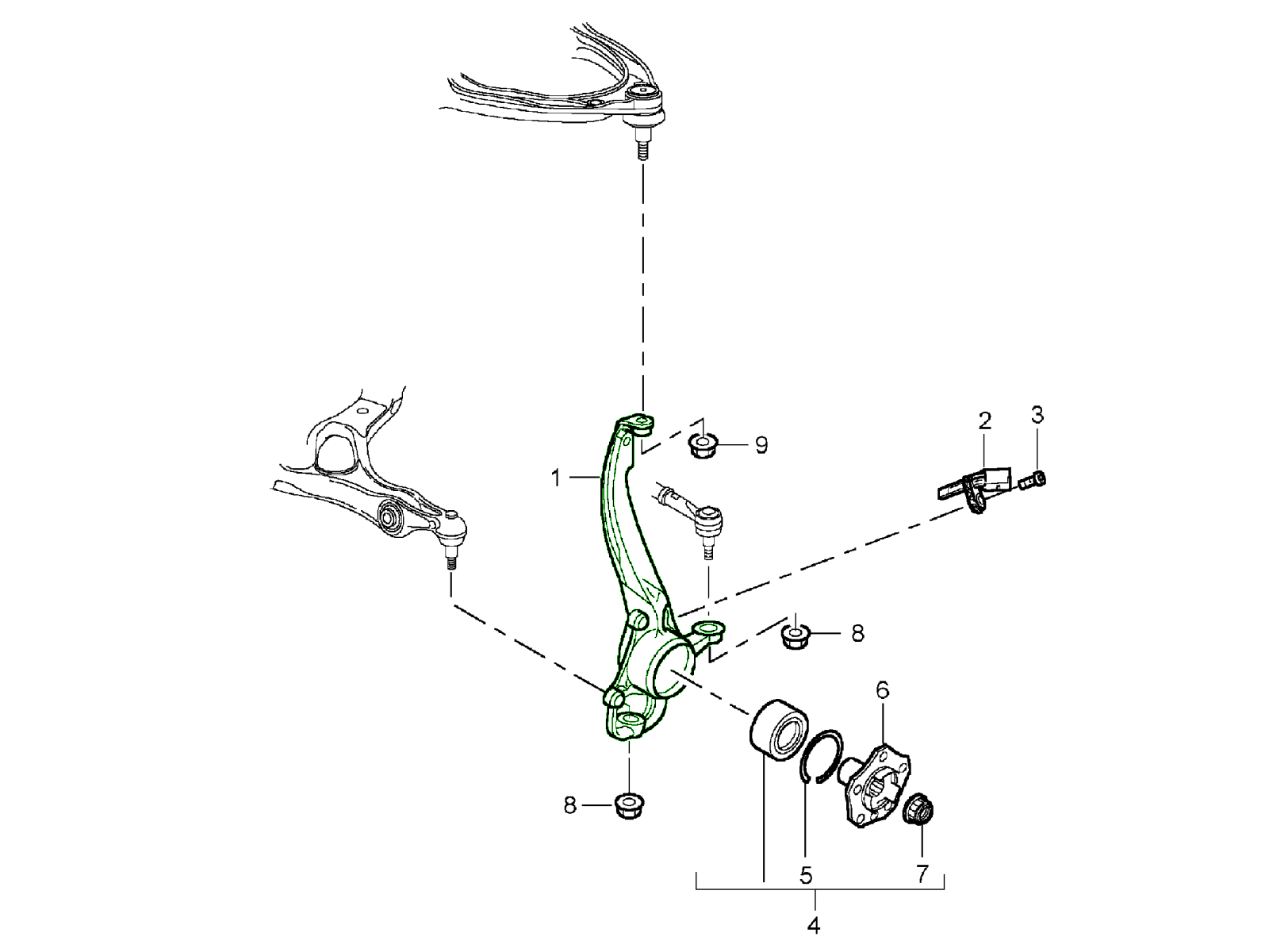 Le moyeu et le porte-roue sont des éléments essentiels de la suspension et du système d'essieu de votre Porsche. Ensemble, ils forment le point de fixation central de la roue, du disque de frein et du roulement, permettant une rotation fluide et un alignement précis. Le porte-roue (ou fusée) est relié aux bras de suspension et à la direction, conservant une géométrie précise pour la stabilité, la sécurité et le contrôle.