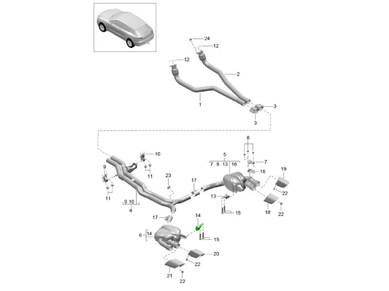 Système d'échappement / Silencieux avant / Silencieux arrière (Modèle : CNCC,CNC, CYNA,CYPA, CYP,CYNB+ PR:0P0,0P3, 0P6) 95B.1 Macan 2.0L 2014-18 202-060