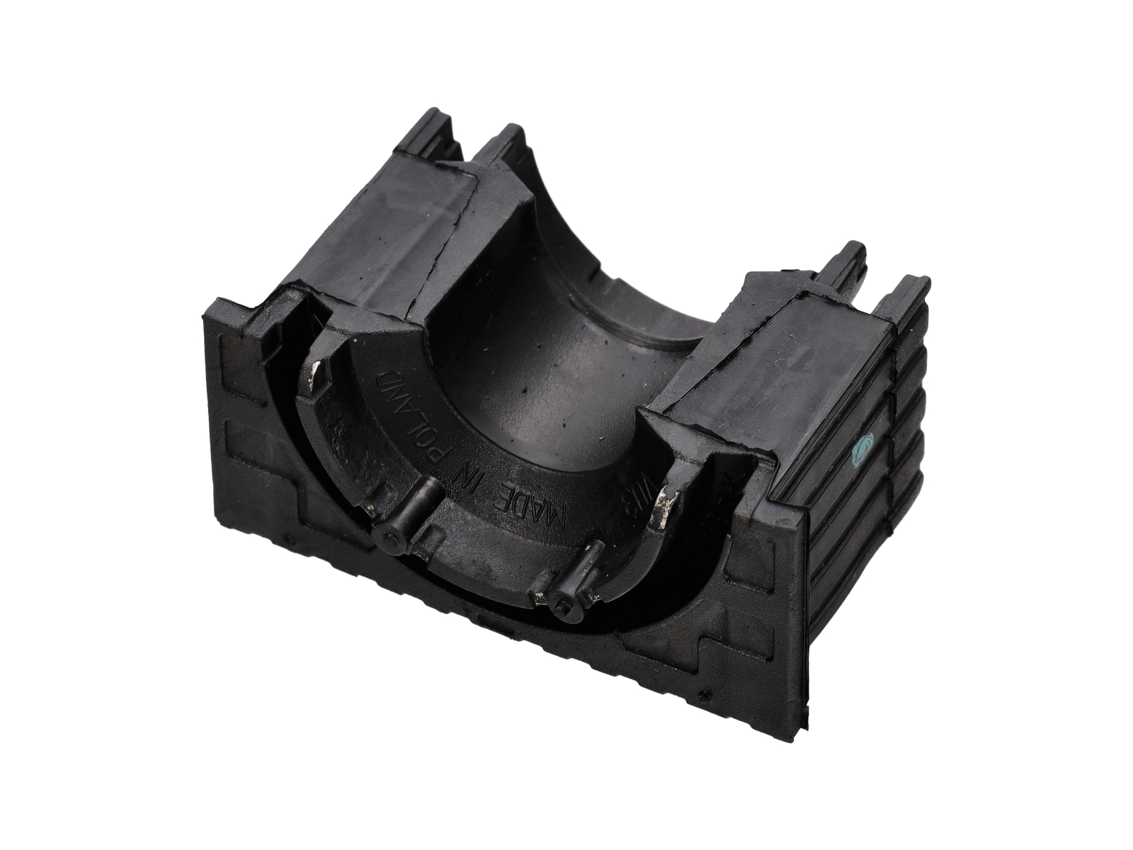 - Ce silentbloc/support absorbe les vibrations, empêche le contact métal sur métal, permet à la barre de pivoter légèrement sous charge et contribue à prévenir le roulis en transférant la charge latérale d'un côté du véhicule à l'autre.
