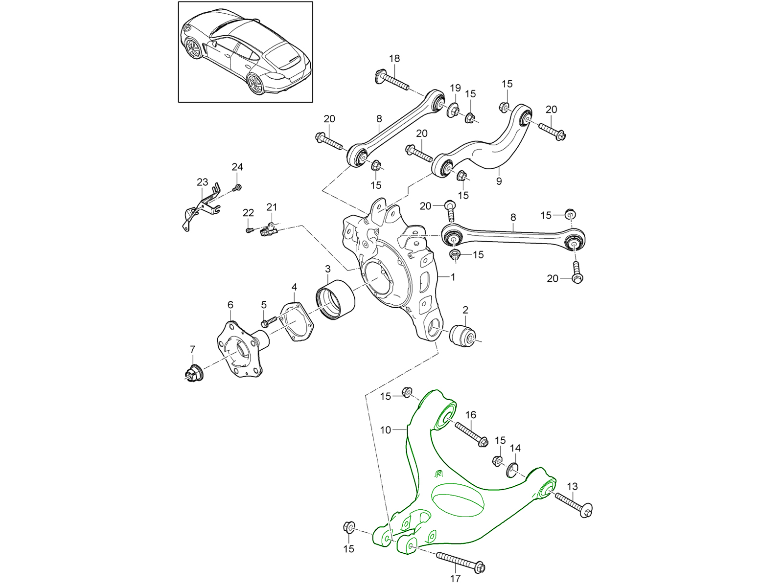 Essieu arrière / Support de roue / Triangle de direction / Barre de direction / Moyeu de roue / Pare-pierres Panamera 970 (G1) 2010-16 501-000