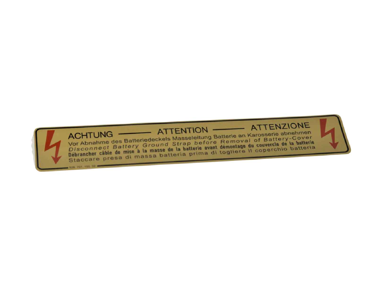 Riproduzione di alta qualità dell'adesivo "Attenzione: Alta Tensione", progettato per i modelli Porsche 993 e Porsche 928.