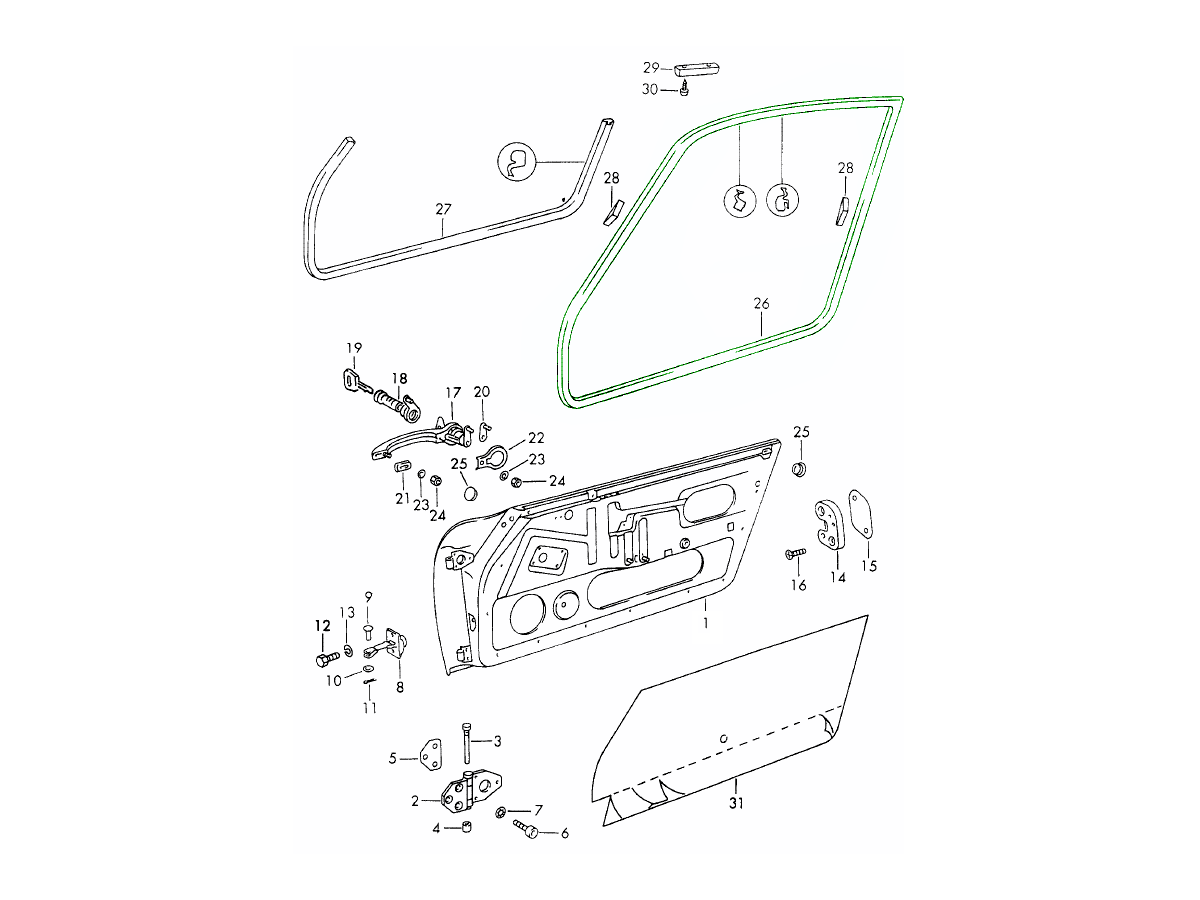 Questa guarnizione in gomma si monta sul bordo della portiera e si comprime quando la portiera si chiude, formando una barriera ermetica tra la portiera e il telaio. Impedisce l'ingresso di acqua, riduce il rumore del vento e mantiene l'isolamento dell'abitacolo, fondamentale per il comfort e l'integrità della tua classica 911.