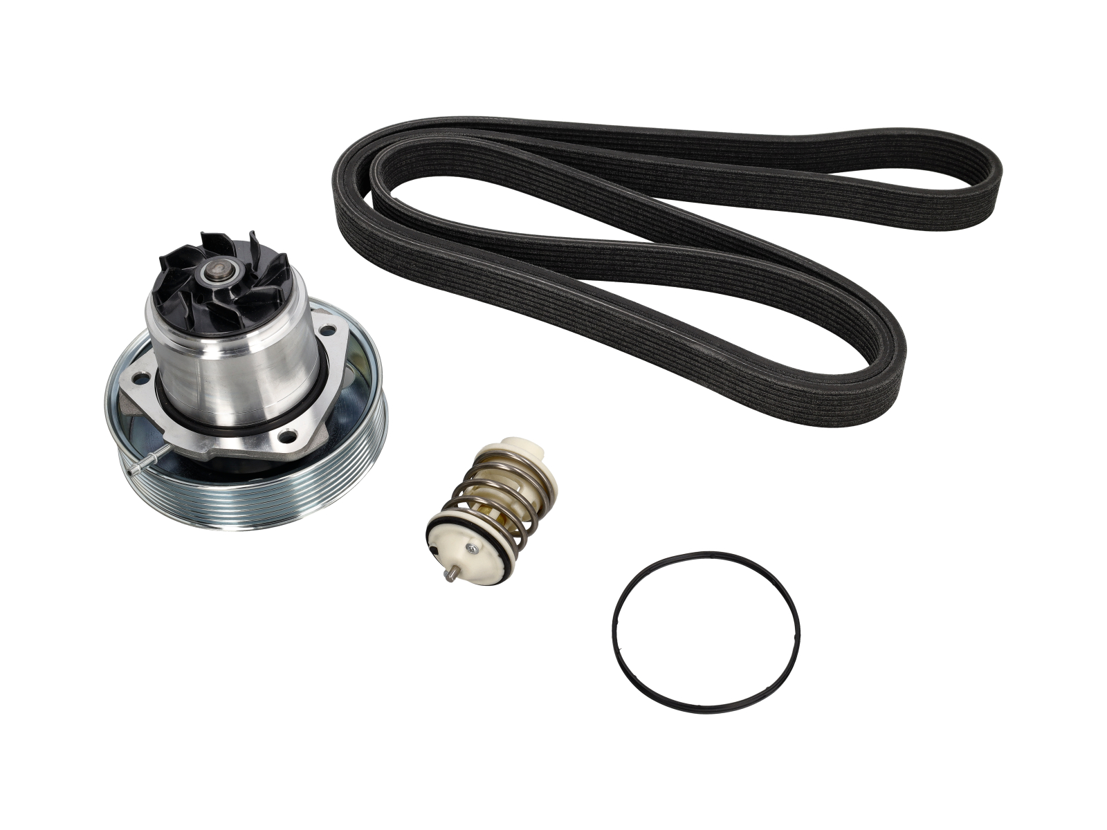La sostituzione della pompa, del termostato e della cinghia serpentina come un unico pezzo garantisce: