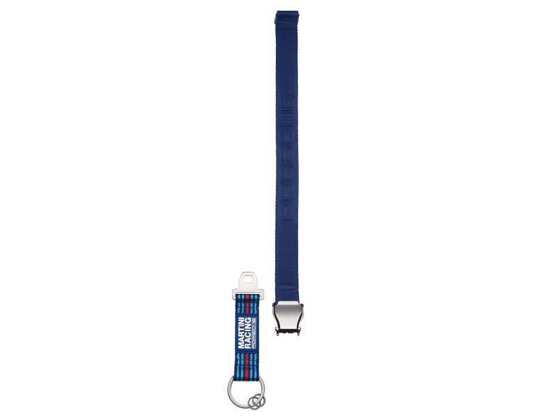 Lanyard con portachiavi removibile e fibbia aereo. Nei tipici colori MARTINI RACING®. Logo "Porsche" in tessuto. Stemma in gomma "MARTINI RACING® PORSCHE".