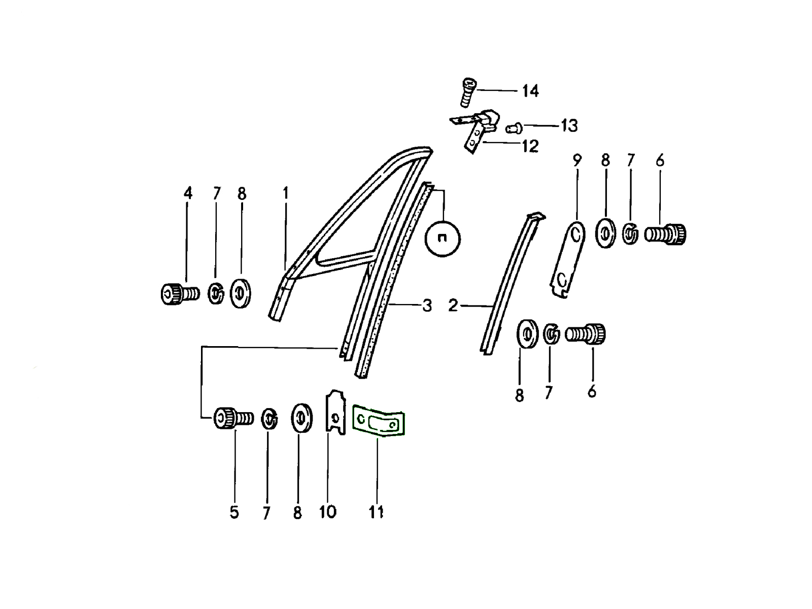 Door glass frame 911 1970-73 COUPE 804-20