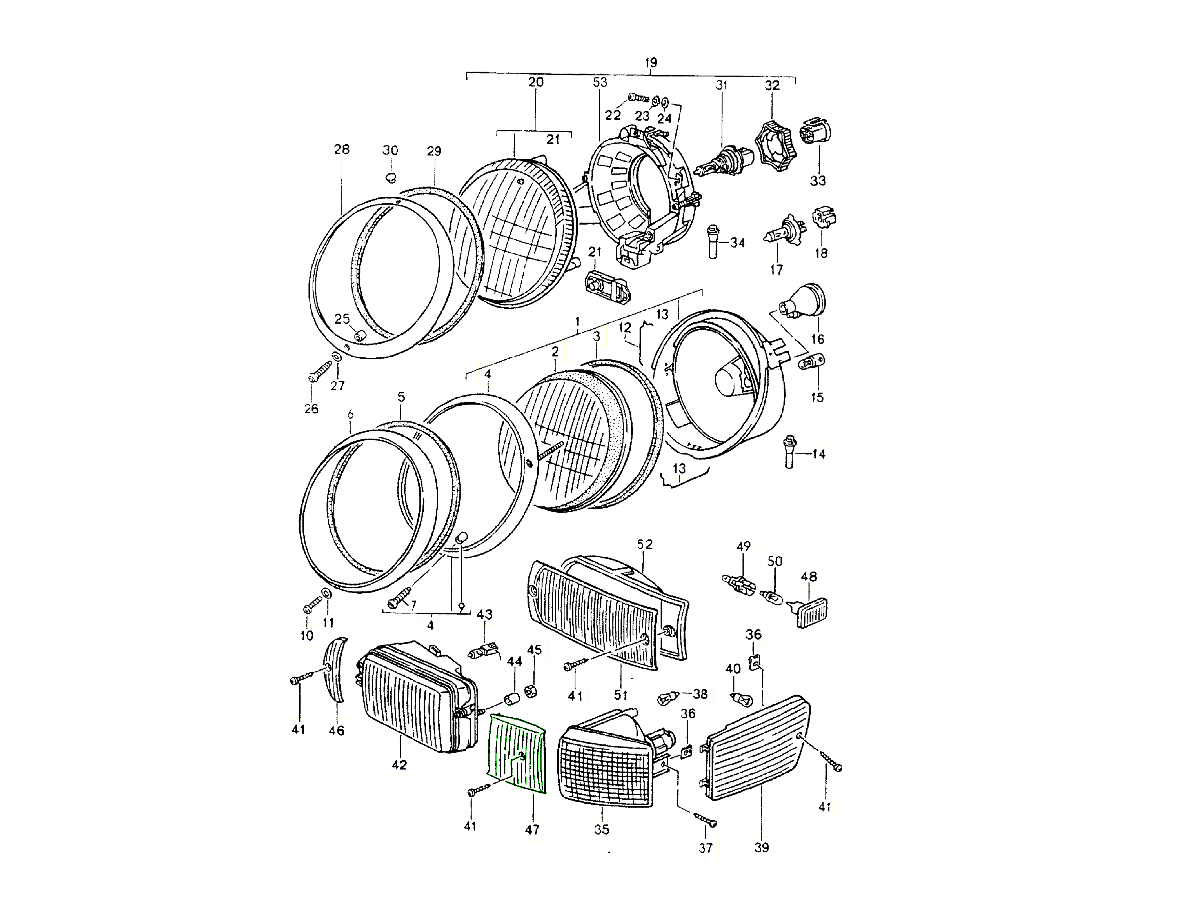 Il reparto corse della fabbrica Porsche ha utilizzato i quattro portalampada a partire dal 1978. Invece di installare le singole unità luminose, hanno determinato che potevano risparmiare peso, aumentare il numero di lampade a quattro e avere un'unità che poteva essere rimossa rapidamente.