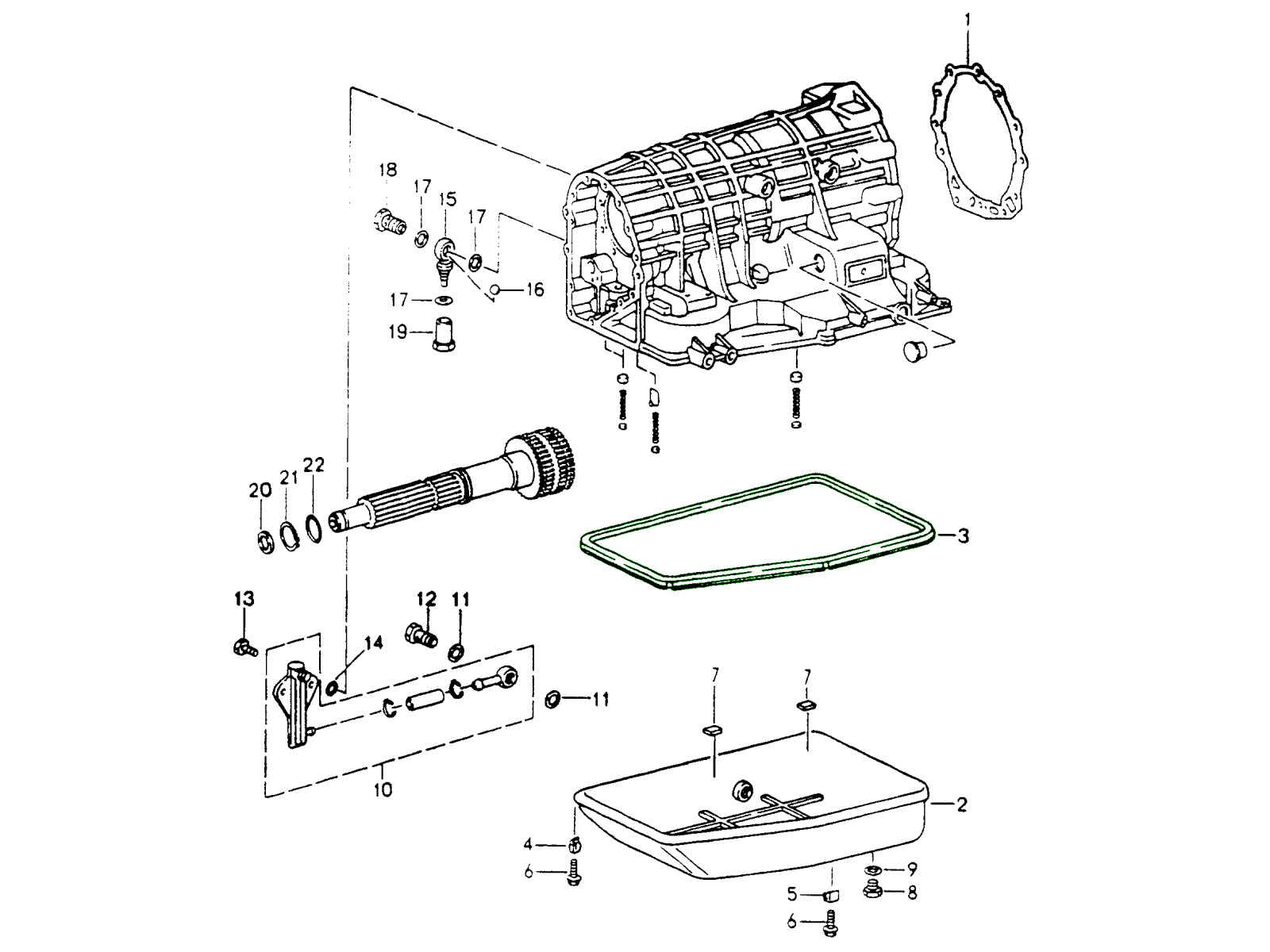 La guarnizione crea una tenuta ermetica tra la coppa dell'olio della trasmissione e l'alloggiamento del cambio, prevenendo perdite di fluido e mantenendo la corretta pressione idraulica all'interno della trasmissione.
