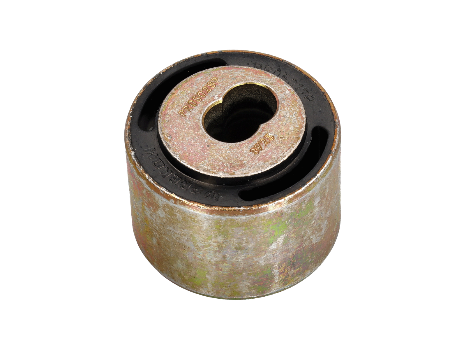 - Sostituendo un inserto in gomma flessibile con un materiale solido o ad alta densità, questa boccola riduce significativamente la flessione o la cedevolezza indesiderate sul perno del braccio di controllo.