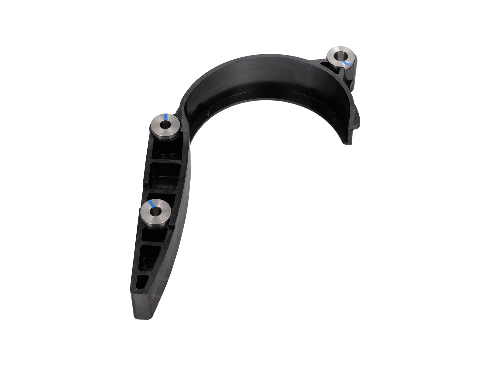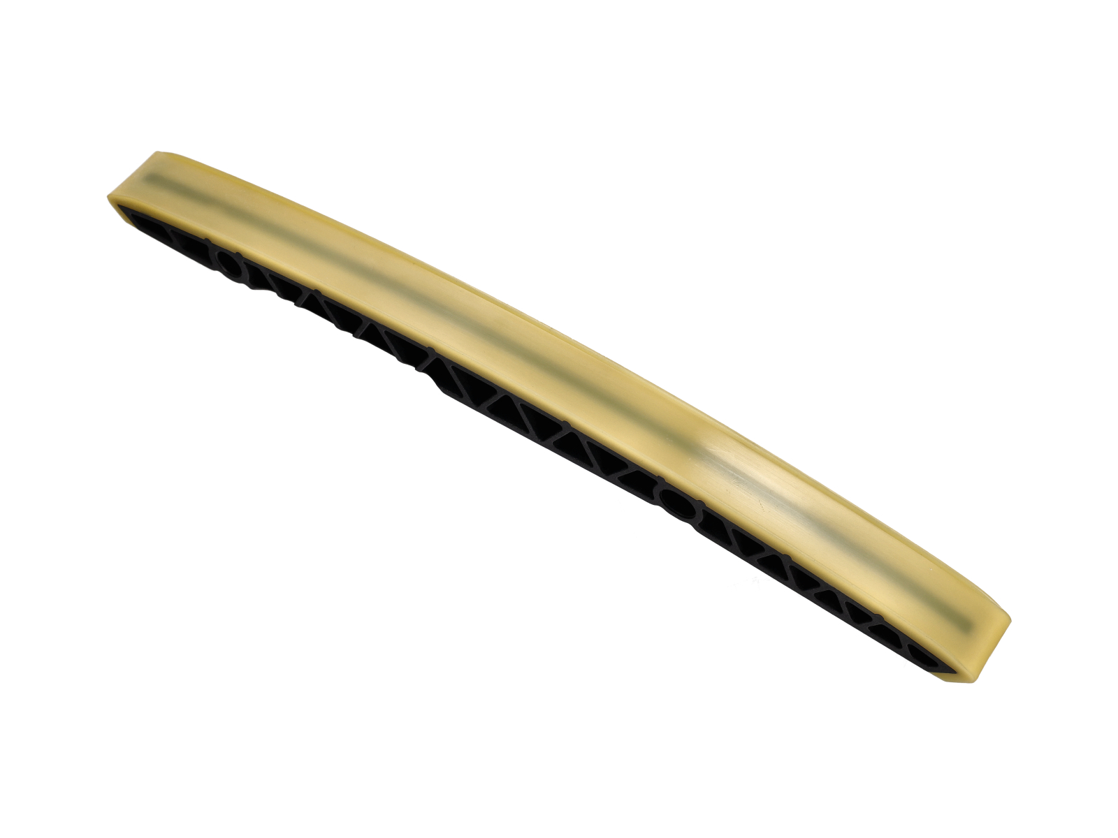 Questa guida assicura che la catena di distribuzione segua il percorso corretto, mantenendone l'allineamento e la tensione per tutta la vita del motore. La guida è progettata per resistere all'usura dovuta al contatto con la catena, alle vibrazioni, all'espansione termica e all'invecchiamento. Si installa nel coperchio della distribuzione esistente senza modifiche. Viene utilizzata sul lato sinistro/destro/inferiore (a seconda della configurazione del motore) e funziona in combinazione con i tendicatena e altre guide per mantenere la fasatura delle valvole precisa e il funzionamento fluido del motore.